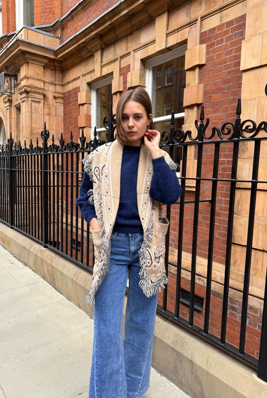 So impressed with this little black gilet… perfectly dresses up a casual outfit and great for this interim time of year! So reasonably priced too!