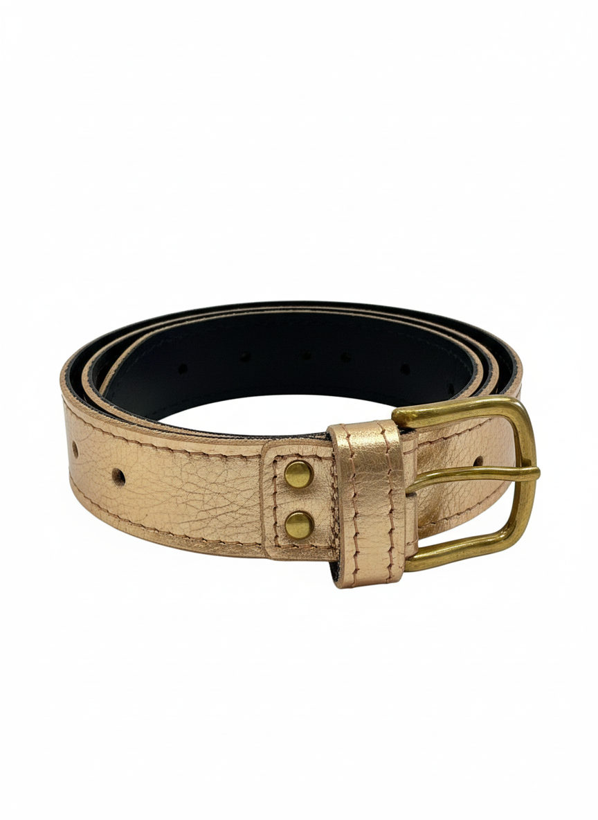 Elevate your everyday style with this stunning rose gold belt, designed to add a touch of luxury to any outfit. The gleaming gold buckle catches the light beautifully, making it the perfect accessory to transition from casual to sophisticated looks.