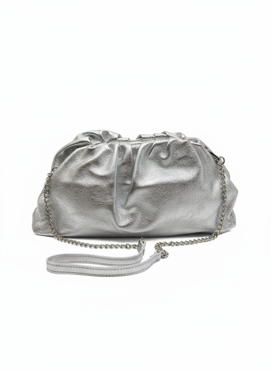 Elevate your evening look with the Orpel Clutch in Silver—a sophisticated accessory that seamlessly transitions from cocktail events to special occasions.