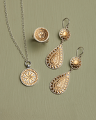 Here’s the dish: This design is an Anna Beck classic brought back from the archives for a limited time only. The Classic Flower Dish Ring features a concave “dish” shape and our signature dotting work with floral motif in the center.