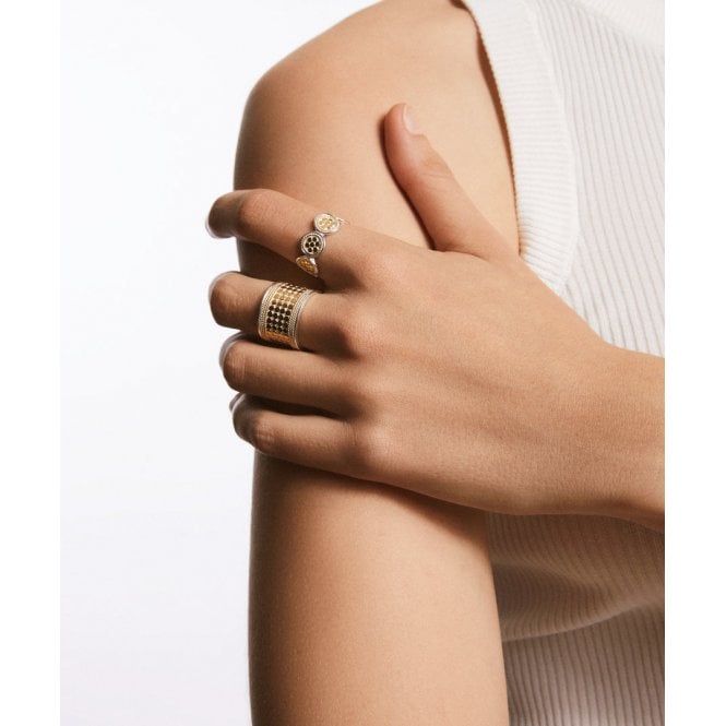 Warm gold complements cool silver in this unique design. With delicate dots and braided edges, each circle represents a neverending connection. Handmade by our artisans in Bali.