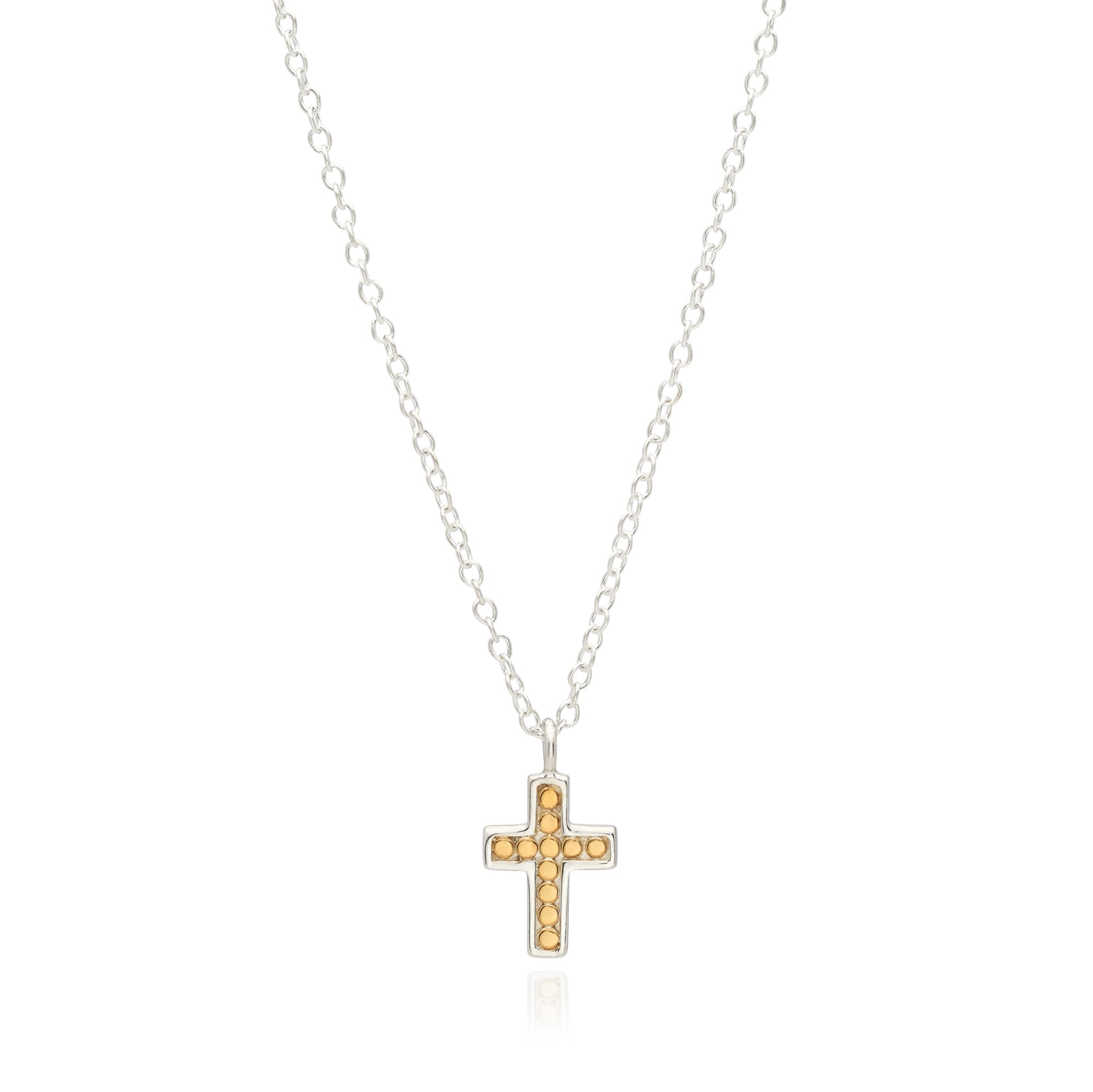 A reboot of a true classic. Our Small Cross Classic Necklace features our signature Balinese handcrafted dotting work in 18k gold on one side and sterling silver on the other side. The pendant hangs from a delicate sterling silver chain.