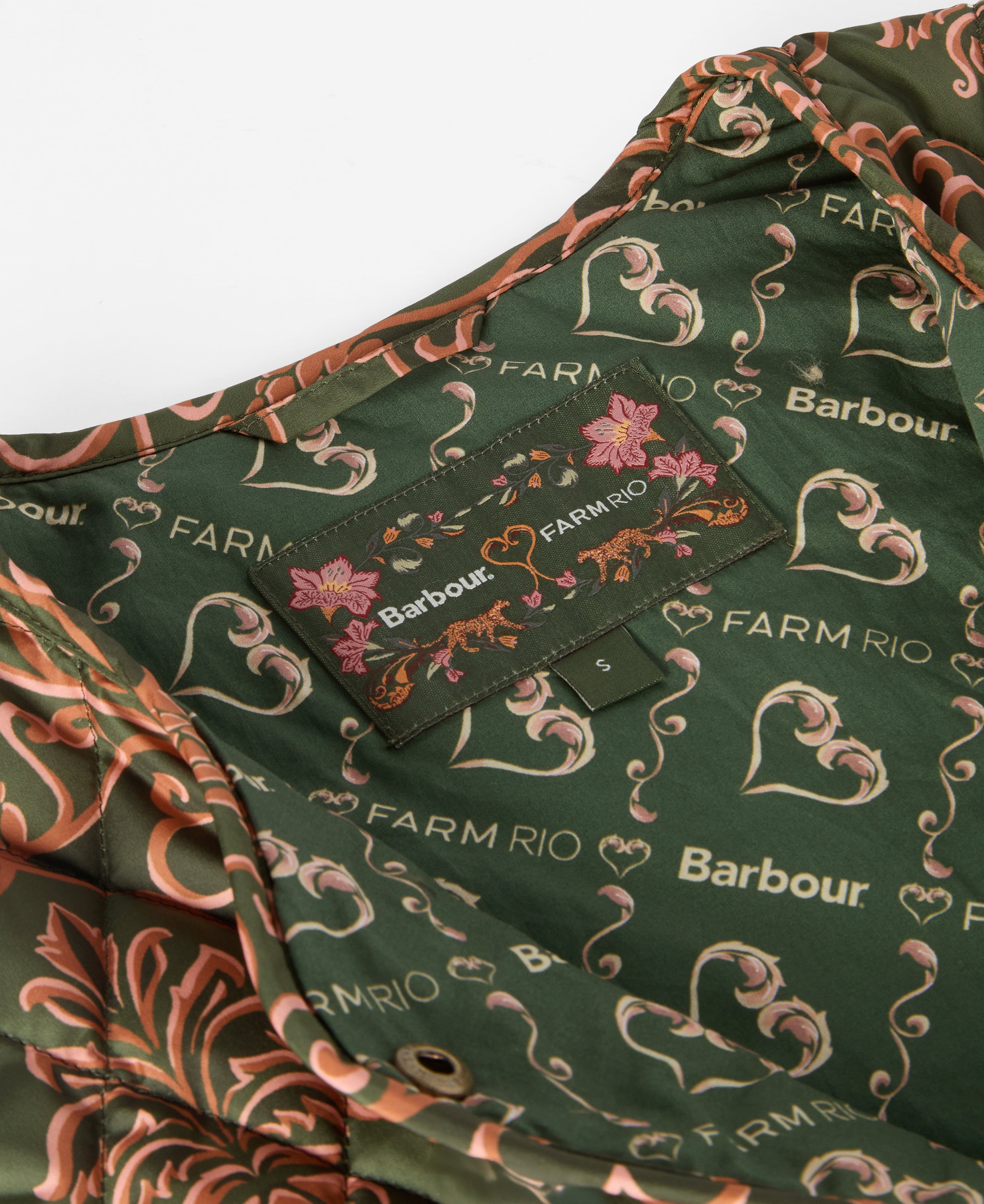 Renowned for their effortless Brazilian charm, the Barbour x FARM Rio Fernanda Liner is the perfect showcase of their mission fill the world with colour and happiness. Showcasing exclusive Barbour x FARM Rio prints, this lightweight quilted liner can be styled under the outerwear in this collection for added warmth or worn alone over t-shirts and shirts for a statement piece.