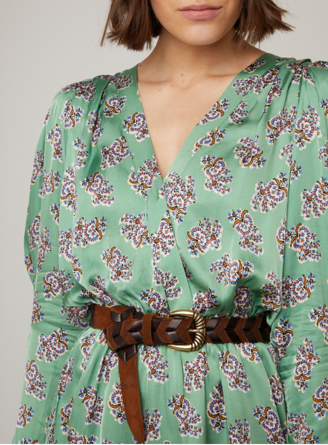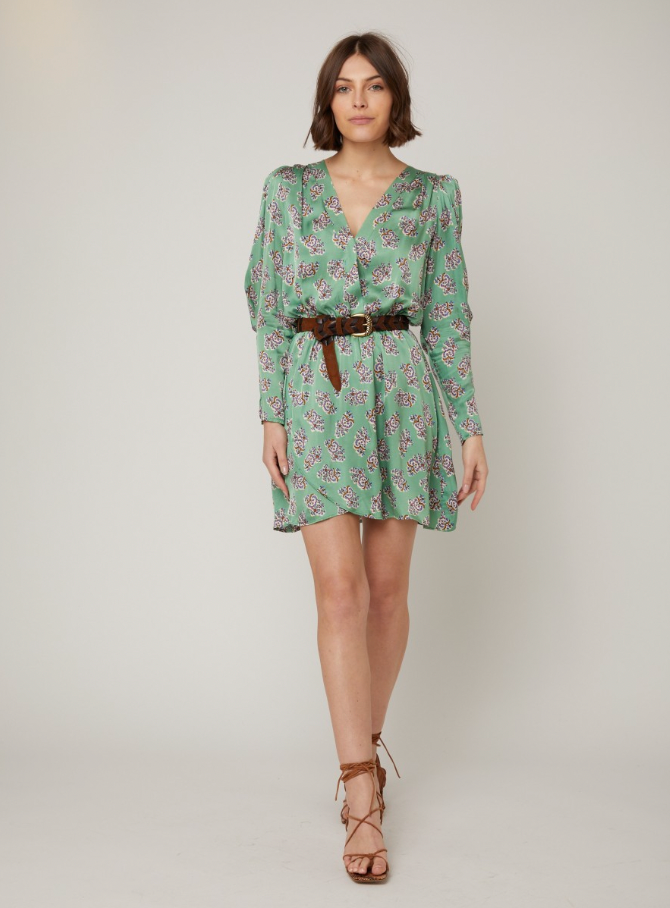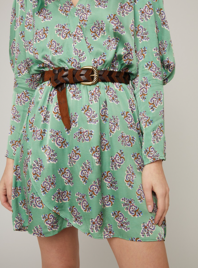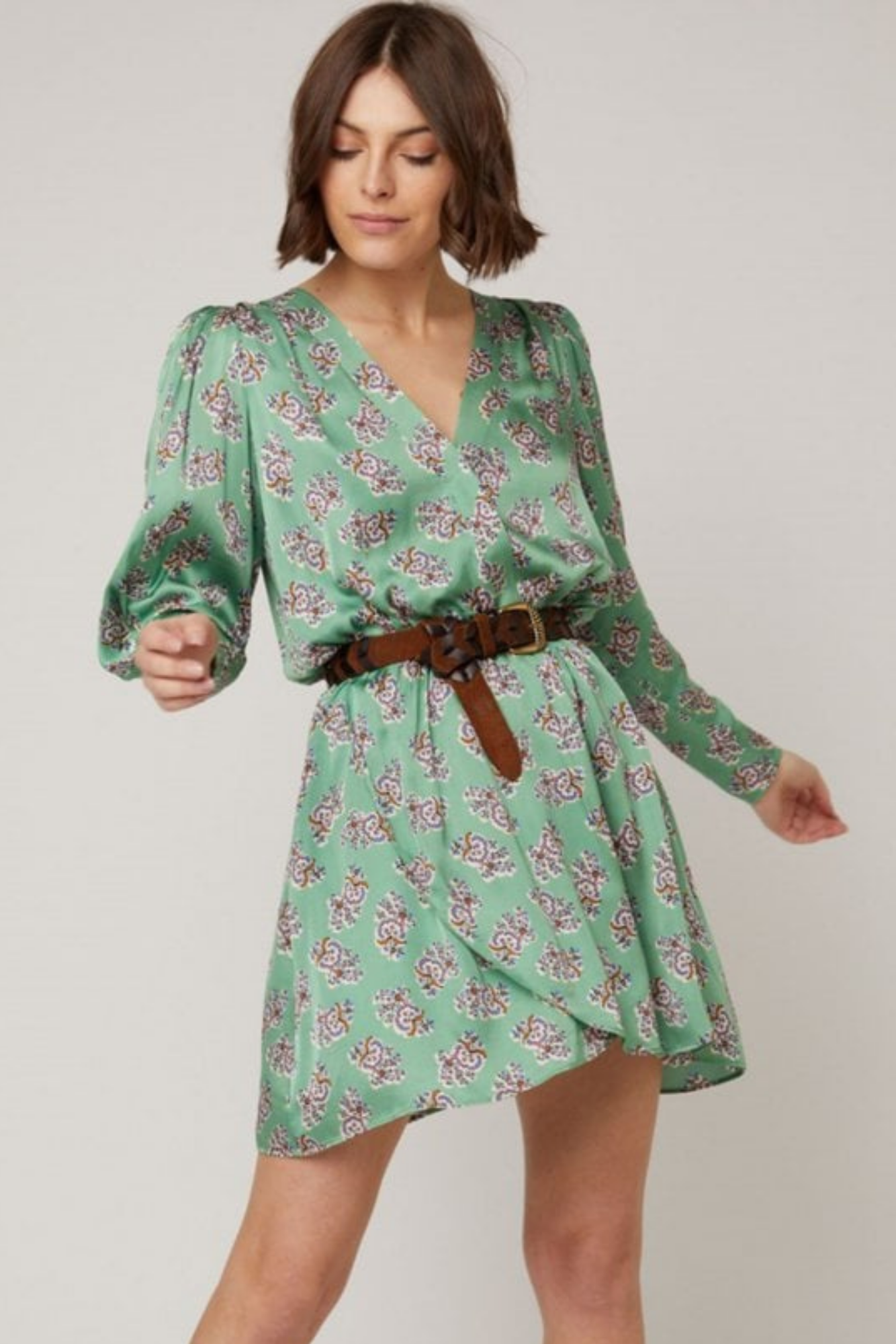 Like an air of Dolce Vita with this beautiful short dress, marked at the waist and crossed in front with a feminine V-neck discreetly held by a button. A refined set of pleats gives volume to the shoulders and structures the dress. Its eco-responsible viscose material gives it a nice fluidity.