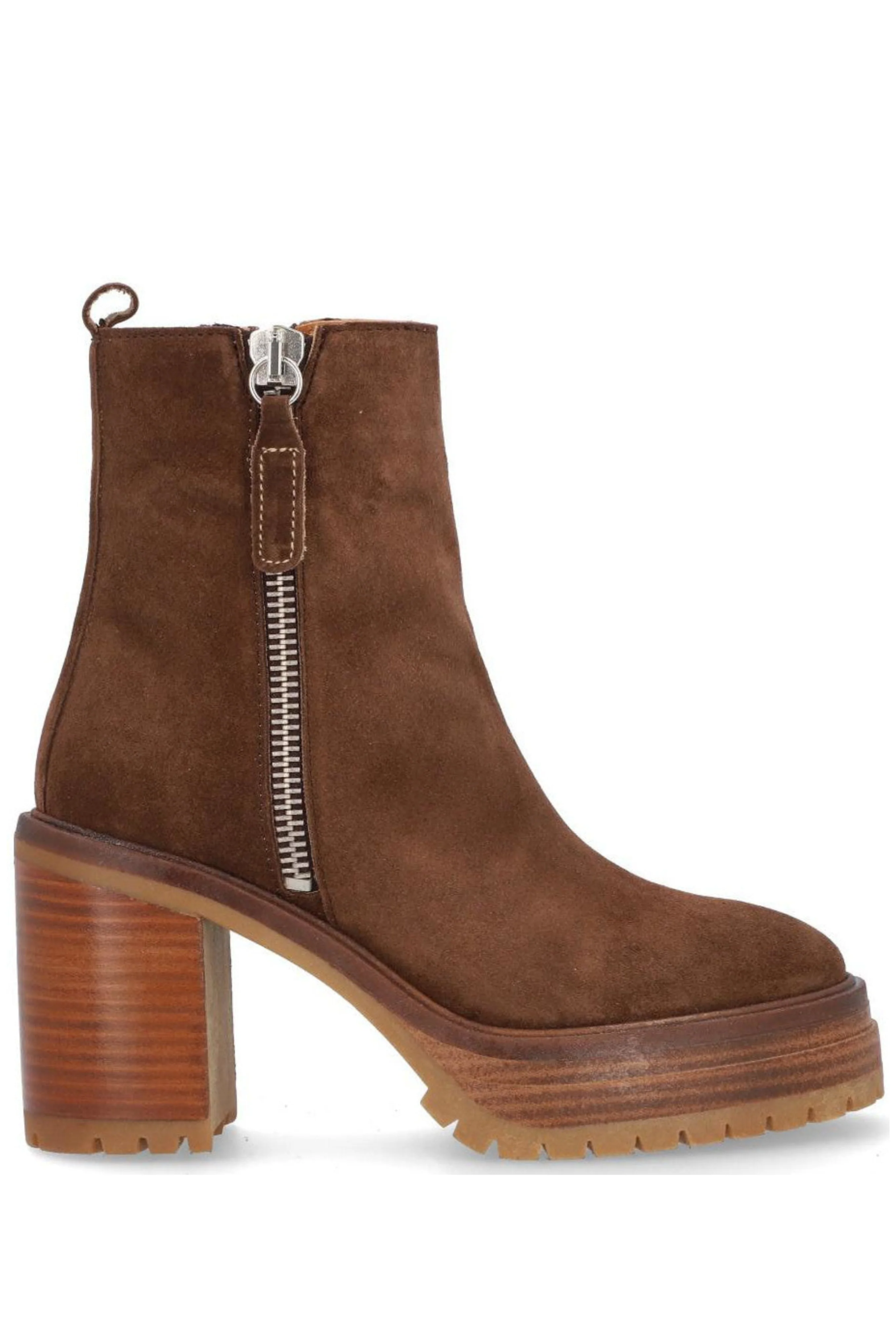 ALPE 2683 Women's ankle boots in brown leather (baby silk) with an 8.5 cm heel, non-slip sole and round toe, zip closure and low shaft.