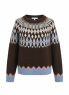 Embrace timeless style with our BC Fair Isle Jumper in rich chocolate brown. This classic knit features an intricate Fair Isle pattern that adds visual interest and sophistication to any wardrobe.