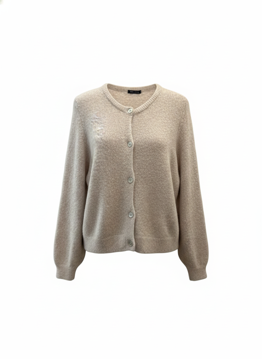 Discover the Round Neck Cardigan in stone. Its soft knit fabric and relaxed fit provide all-day comfort, while the understated round neckline suits every style. Layer it effortlessly over dresses, tees, or wear it open for an elevated look.