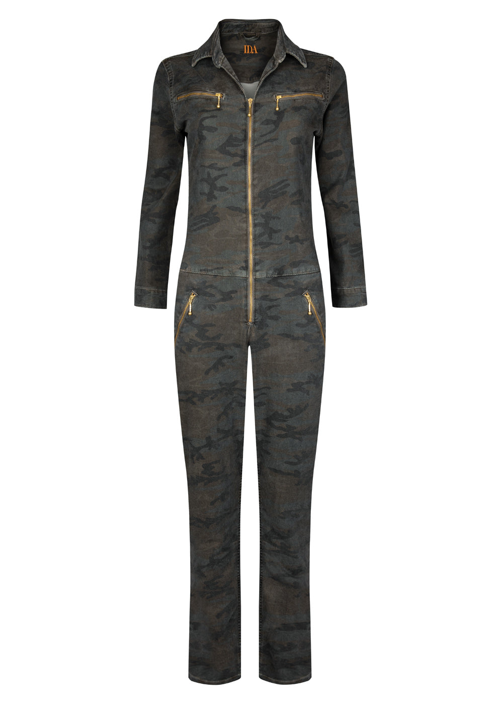 Dolly the Flight Suit in Midnight Mission (camouflage/army print) is a much loved part of the Donna Ida collection and finally it has returned to the pack. Featuring a small amount of comfort stretch for the perfect fit and premium gold zips, the jumpsuit-style Dolly Flight Suit can take you from day to evening or any event.
