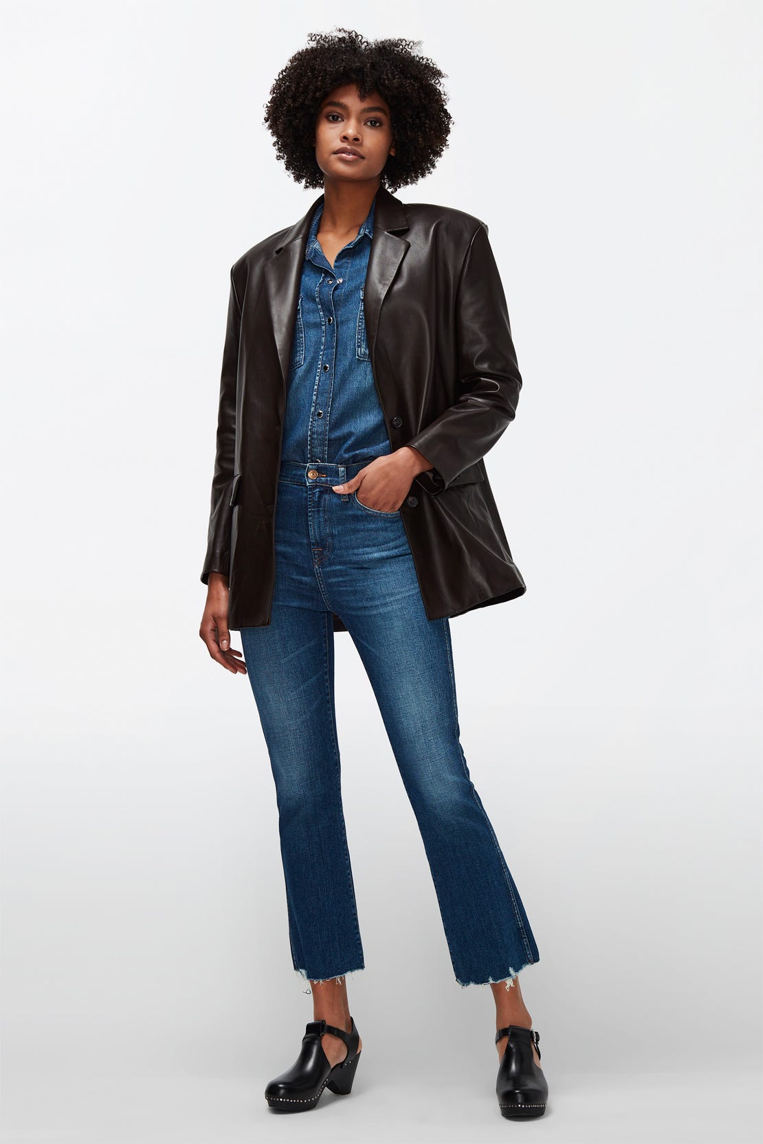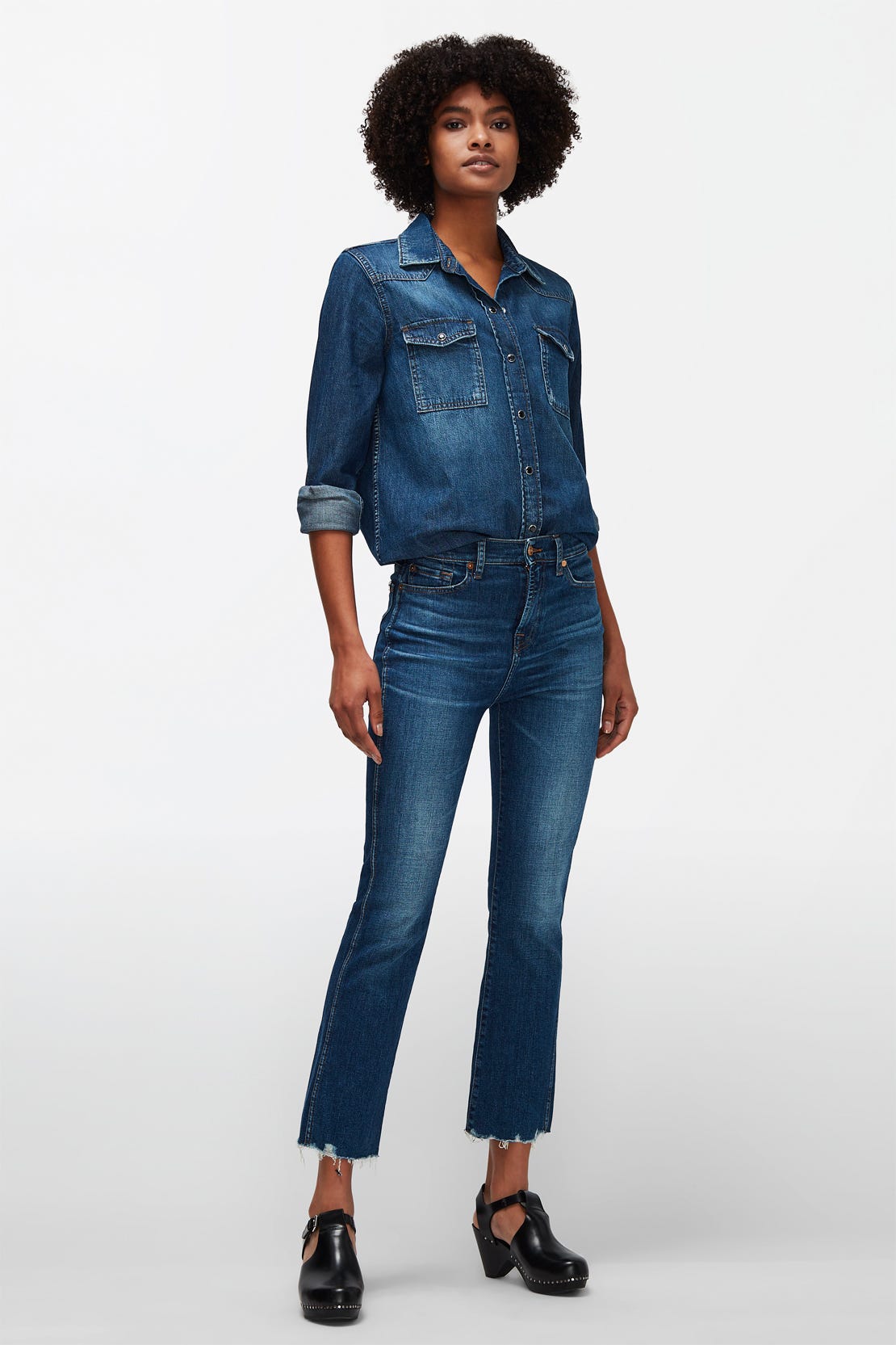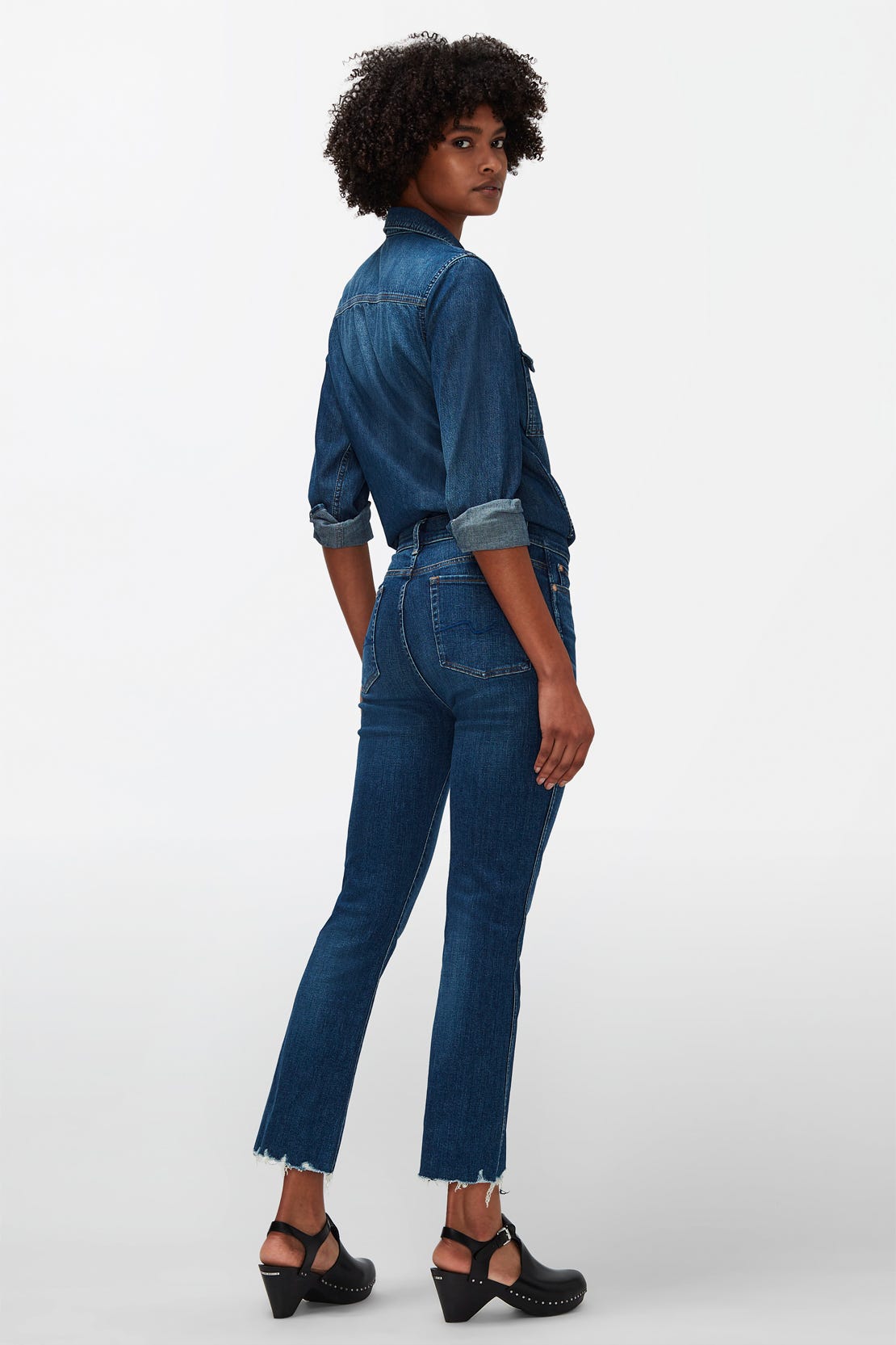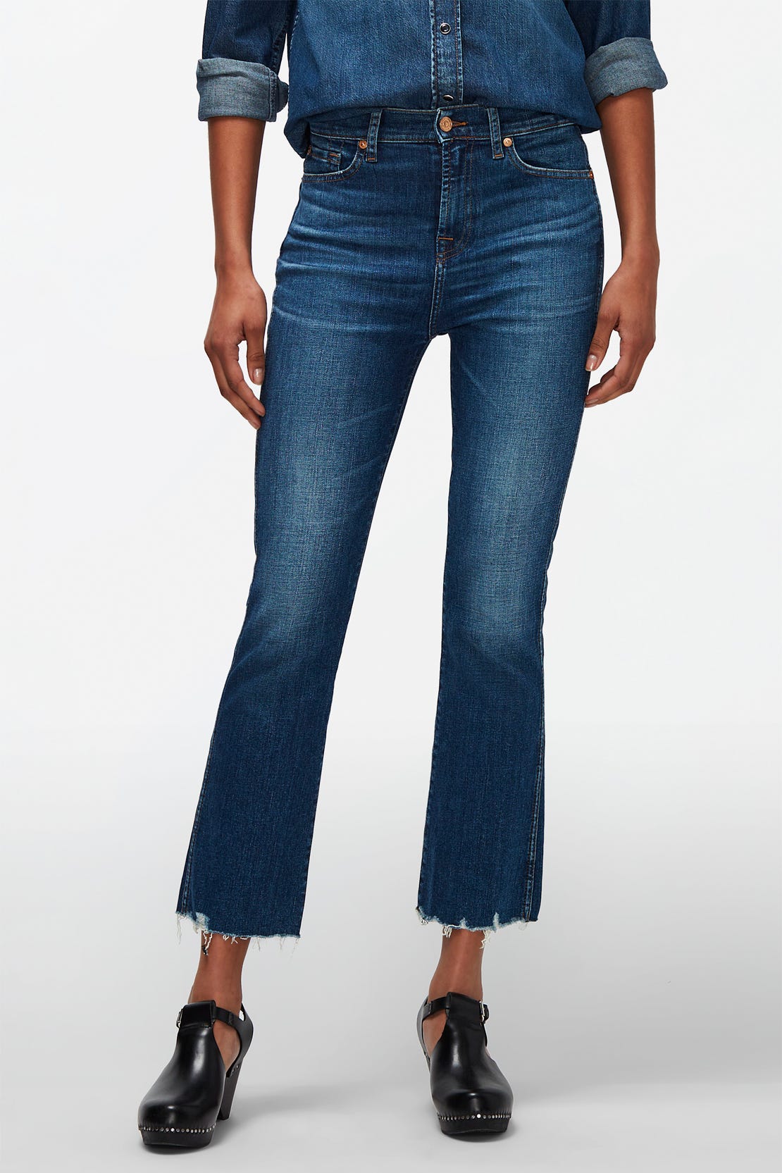 Our signature HW Slim Kick jeans return in a sustainable new guise that's 100% degradable and leaves no environmentally harmful chemicals behind. In dark-blue Slim Illusion Earthkind denim, this staple style works with everything from leather blazers and heels to sweatshirts and sneakers. 7 For All Mankind jeans are made from premium-quality fabrics.