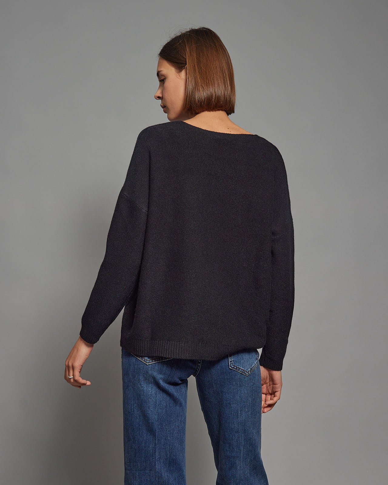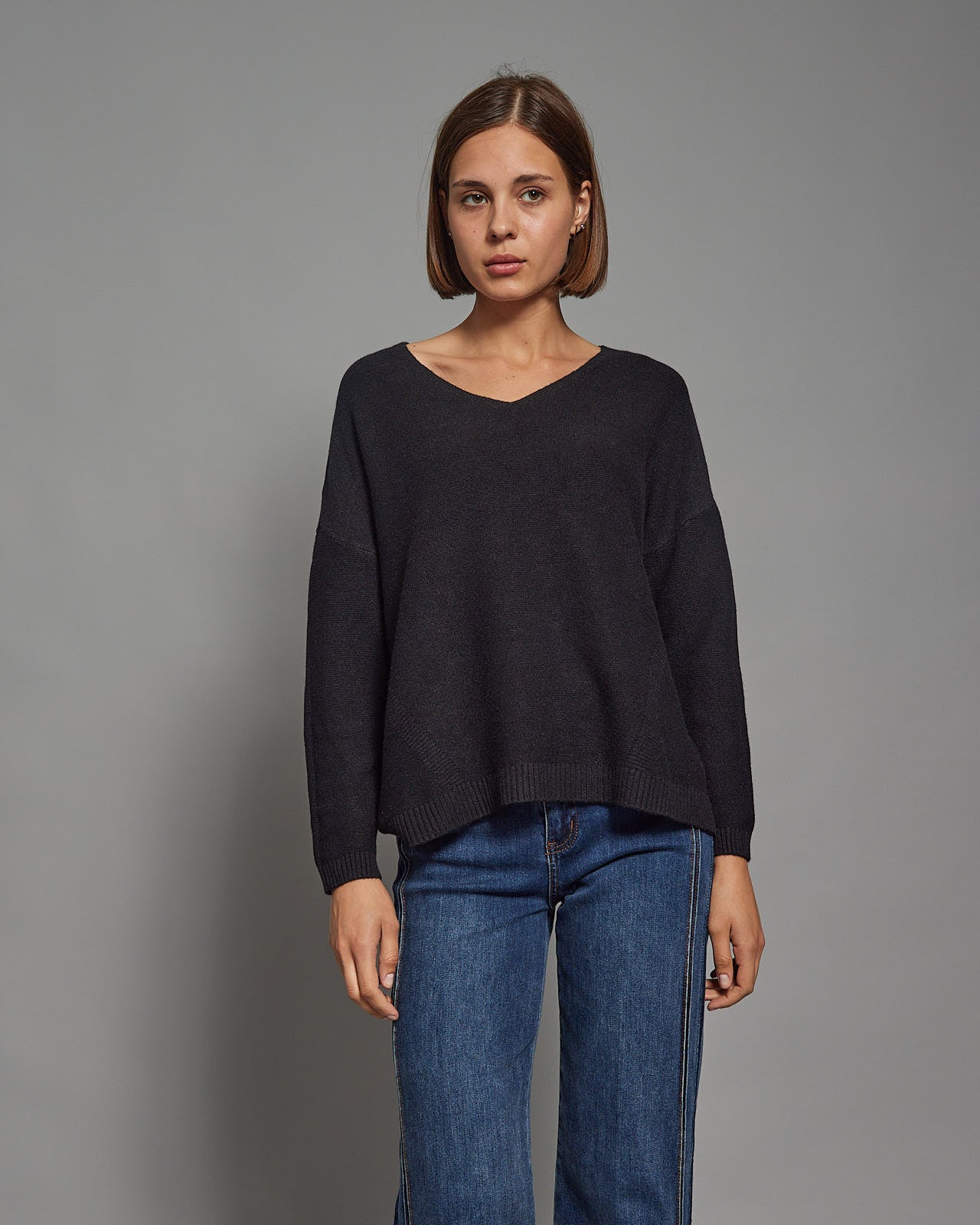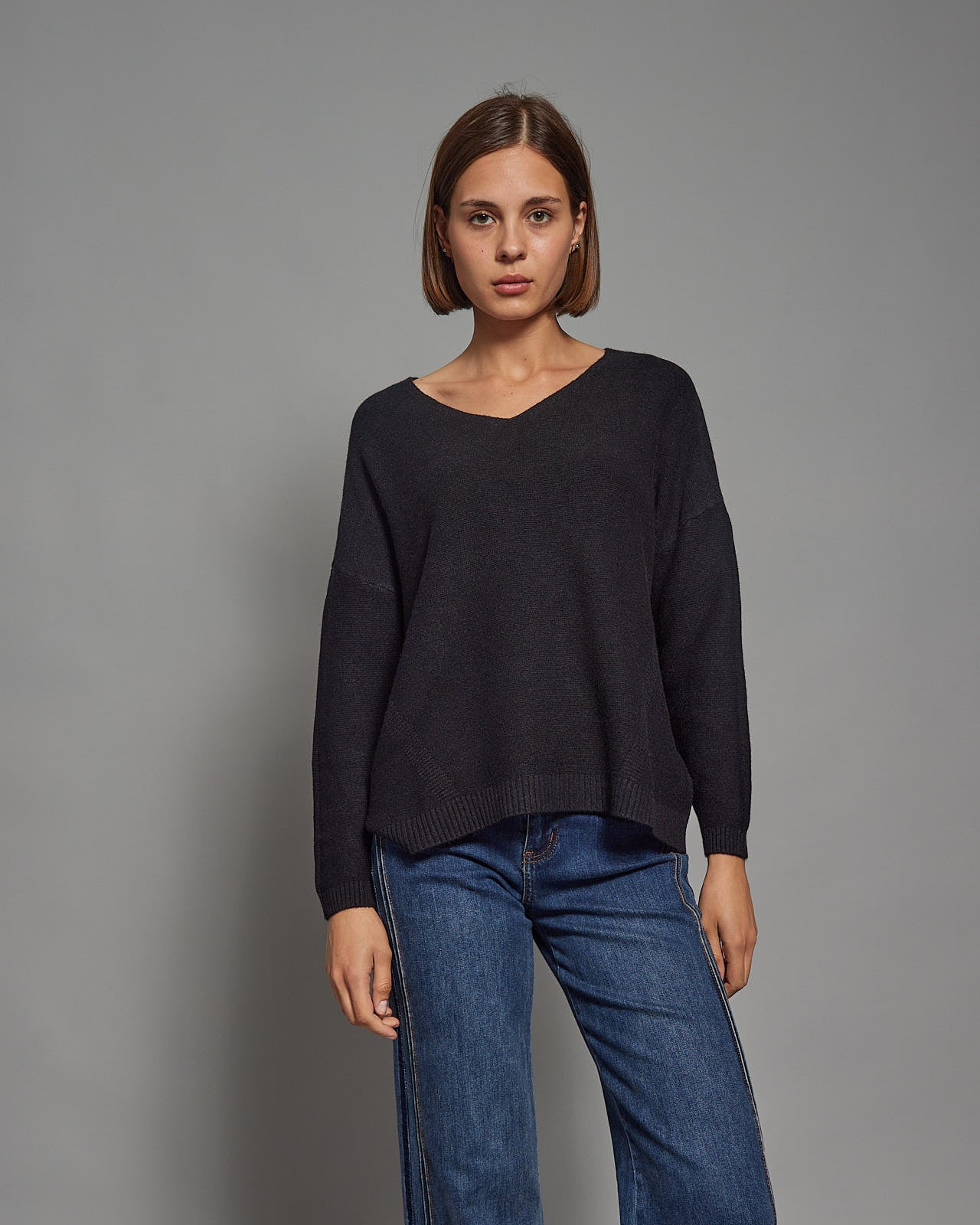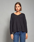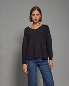 Elevate your everyday wardrobe with the Pandora V-Neck Knit in classic black. This versatile piece features a flattering V-neckline and soft knit fabric that moves with you throughout your day. Perfect for layering or wearing solo, it's the kind of essential that works with nearly everything in your closet.