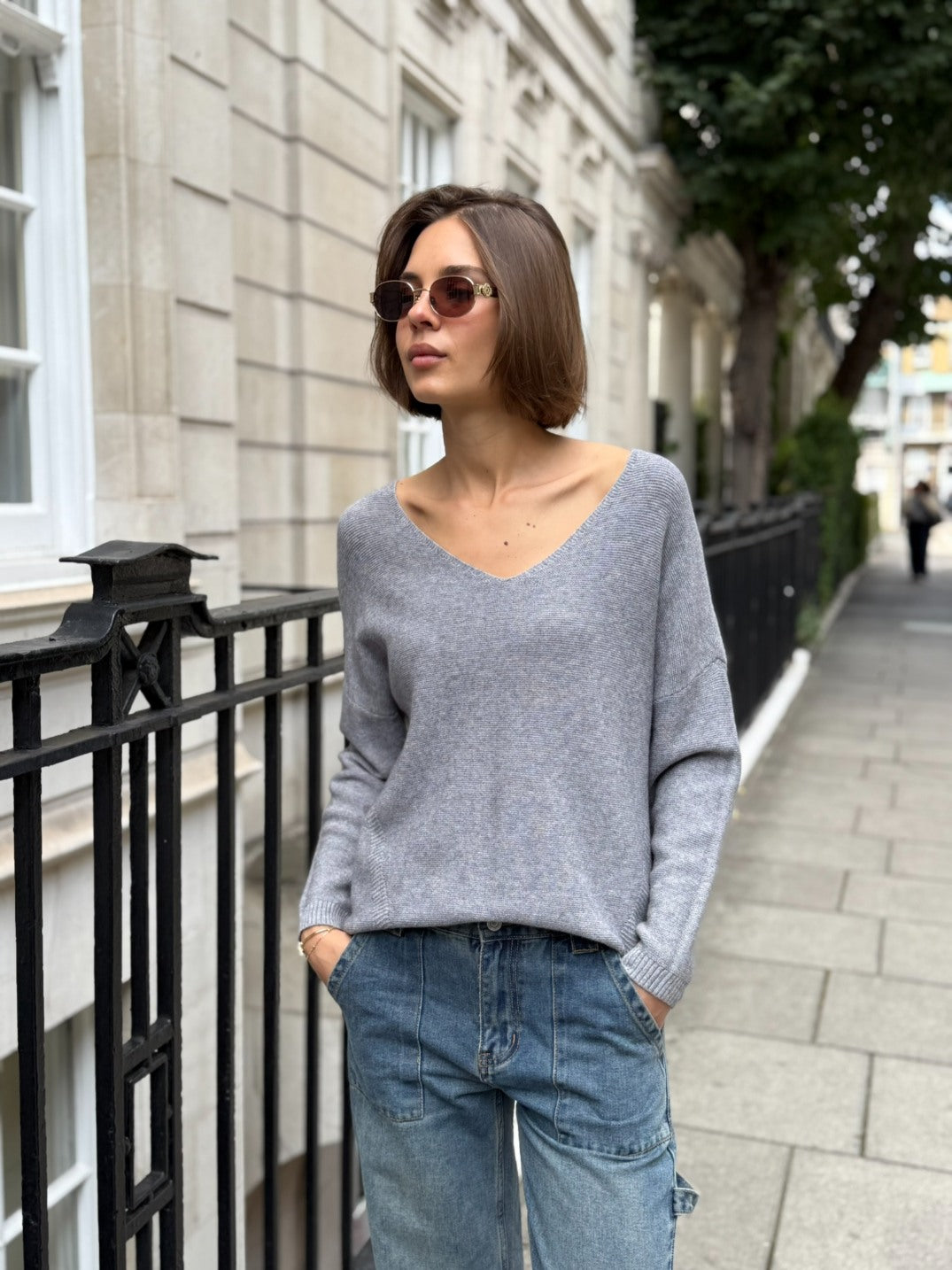 Y Pandora V-Neck Knit - Grey
