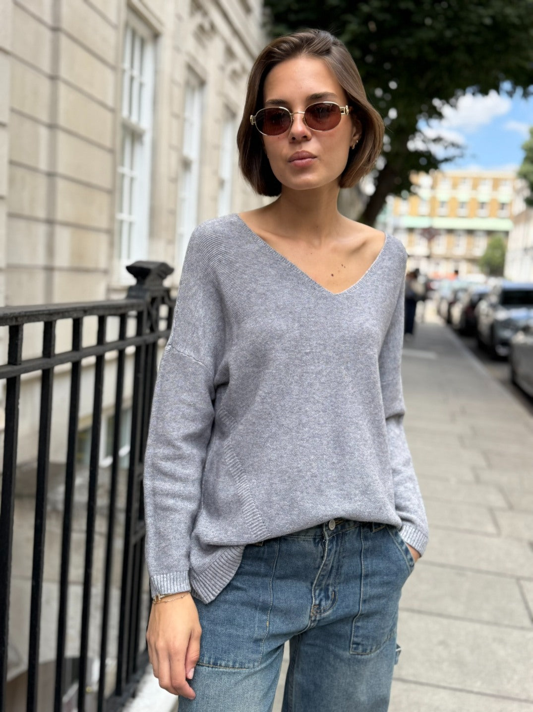 Elevate your everyday wardrobe with the Pandora V-Neck Knit in classic grey. This versatile piece features a flattering V-neckline and soft knit fabric that moves with you throughout your day. Perfect for layering or wearing solo, it's the kind of essential that works with nearly everything in your closet.