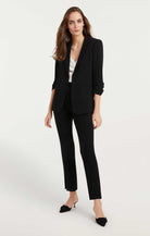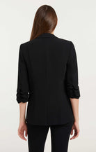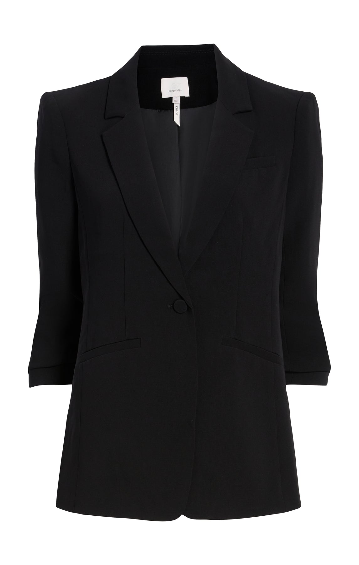 Look polished and professional in this Crepe Khloe Blazer. This expertly tailored piece features a collared neckline, notched lapels, and stylized sleeves for a look that is modernly classic. The classic black color will have you standing out with sophisticated style. Make a powerful statement with this must-have blazer.