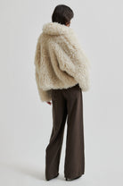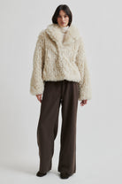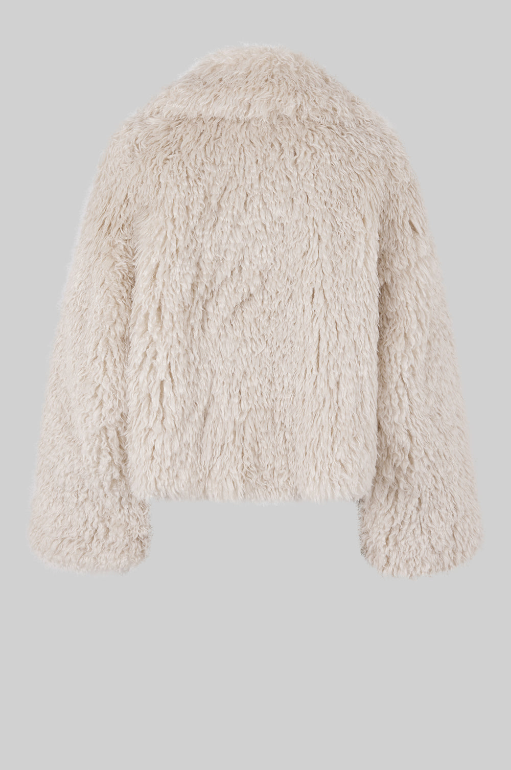 Second Female shaggy jacket. The jacket is made in an ultra-soft fabric with shaggy, sheep-like texture. Featuring a concealed hook and eye fastening at the front and two concealed pockets. Fully lined. Regular fit with relaxed, slightly boxy silhouette.