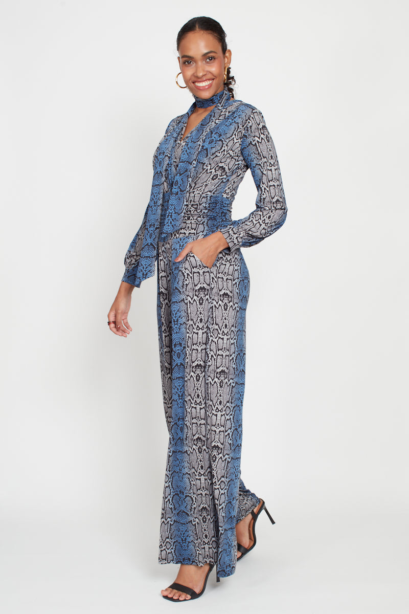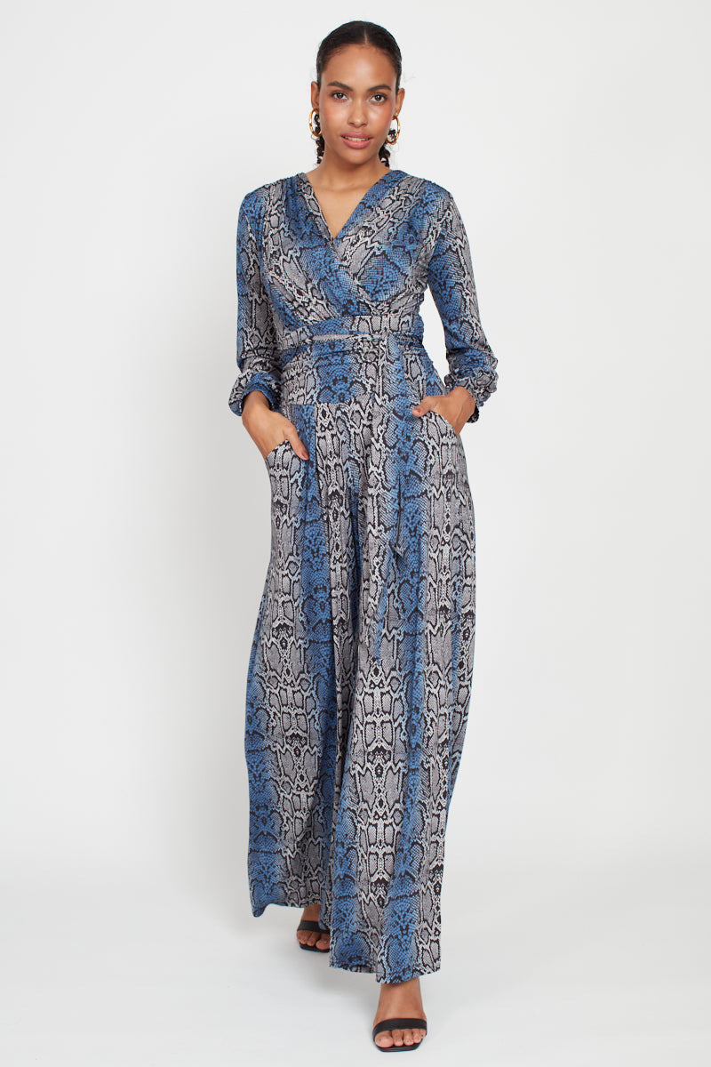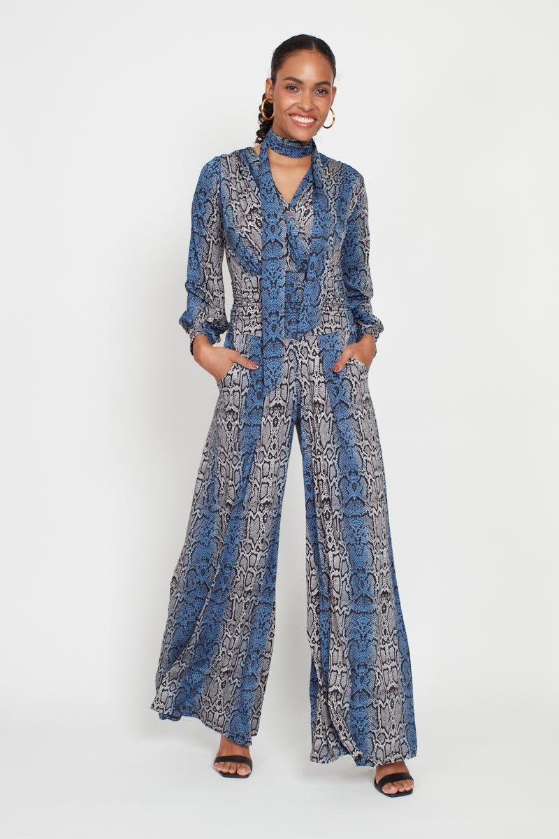 Sharon Jumpsuit - Snake Blue/Grey Print