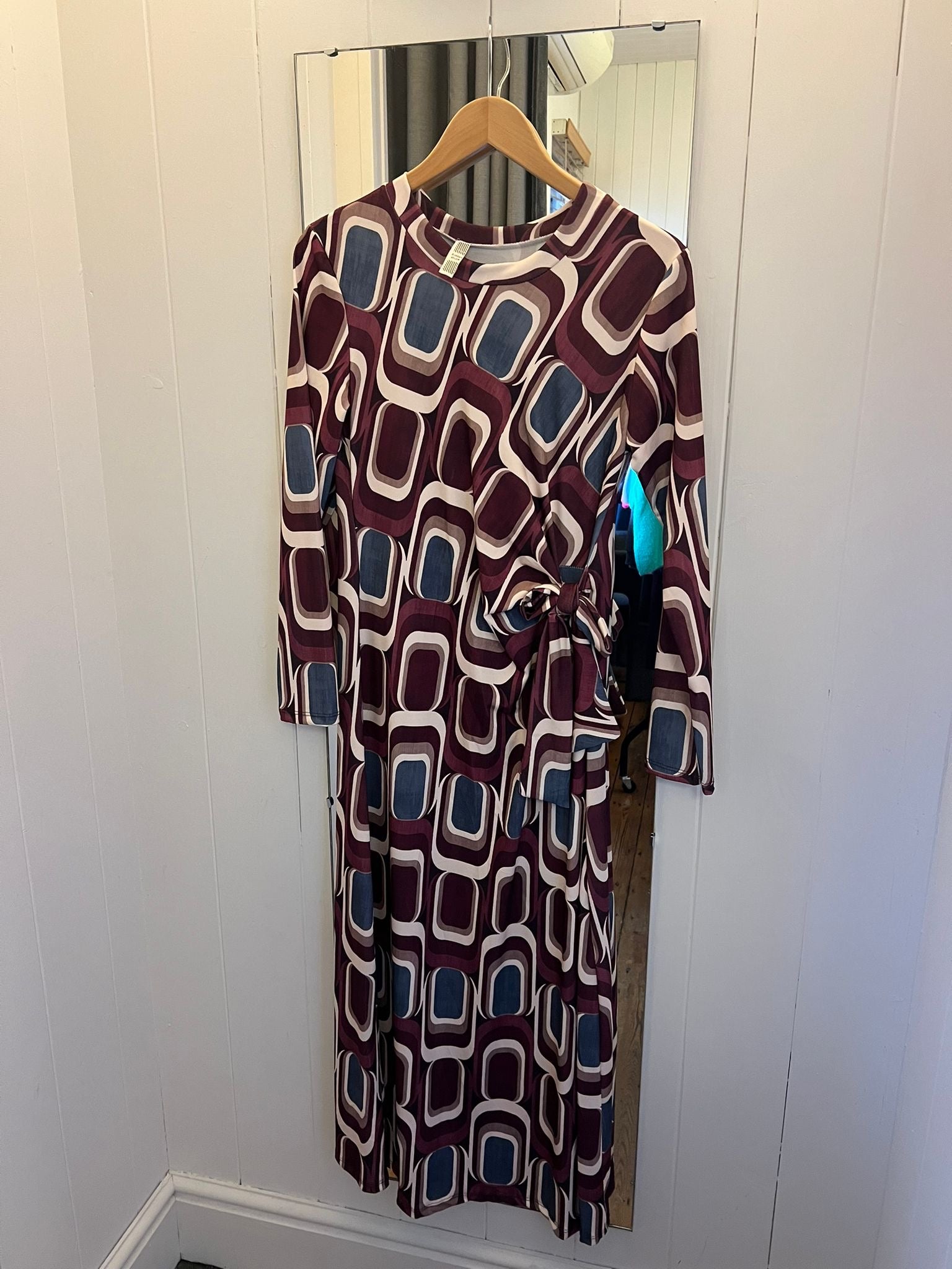 Voy 36966 Tie Side Printed Dress - Burgundy