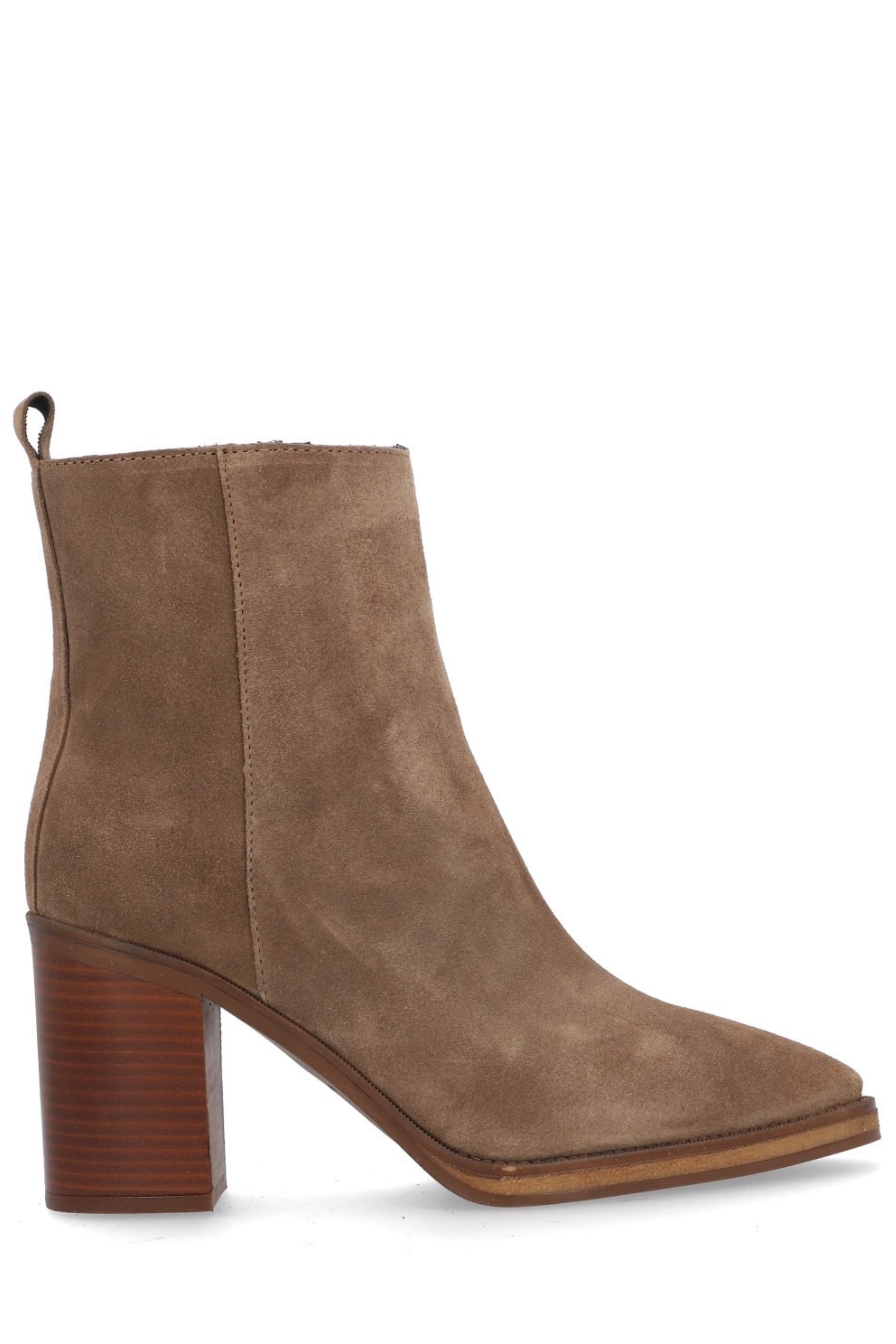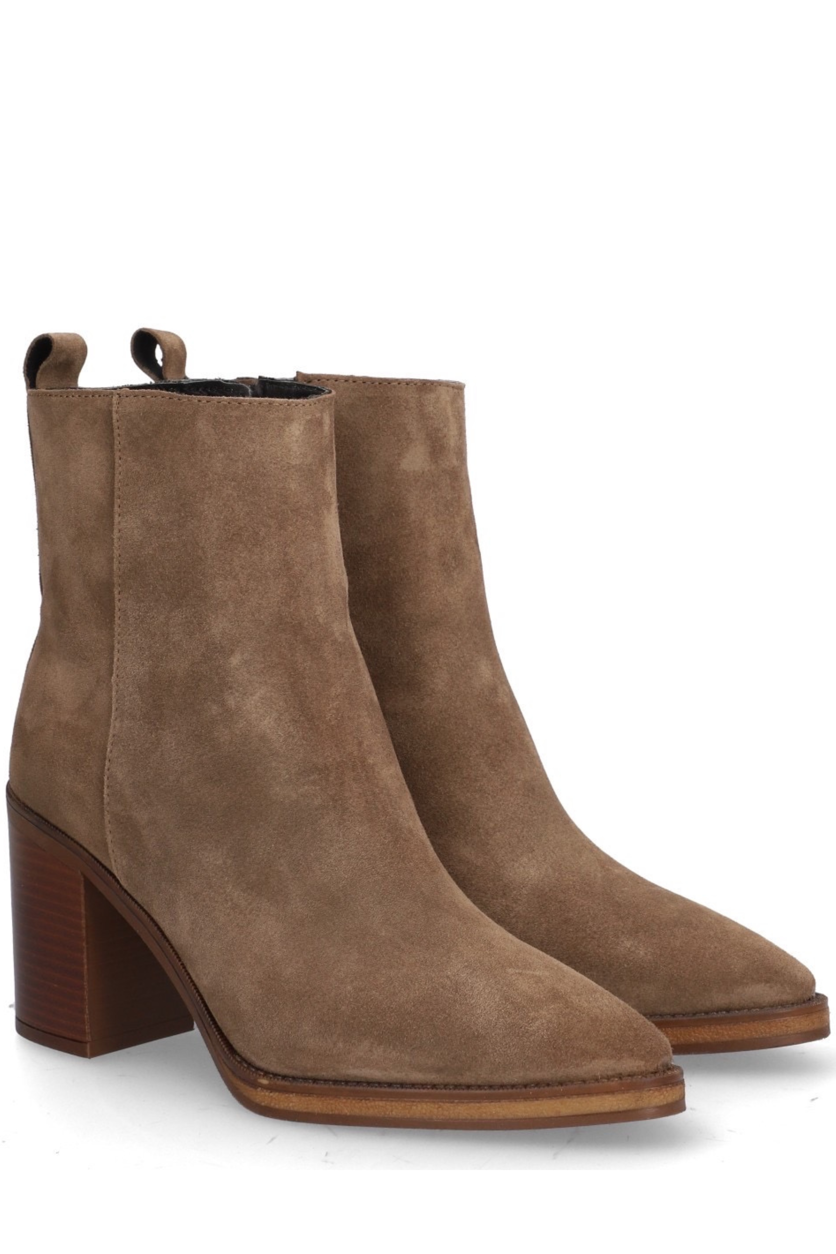 ALPE 5221 women's ankle boot made of grey leather (baby silk) with an 8 cm heel, non-slip sole and pointed toe, with zip closure and low shaft.