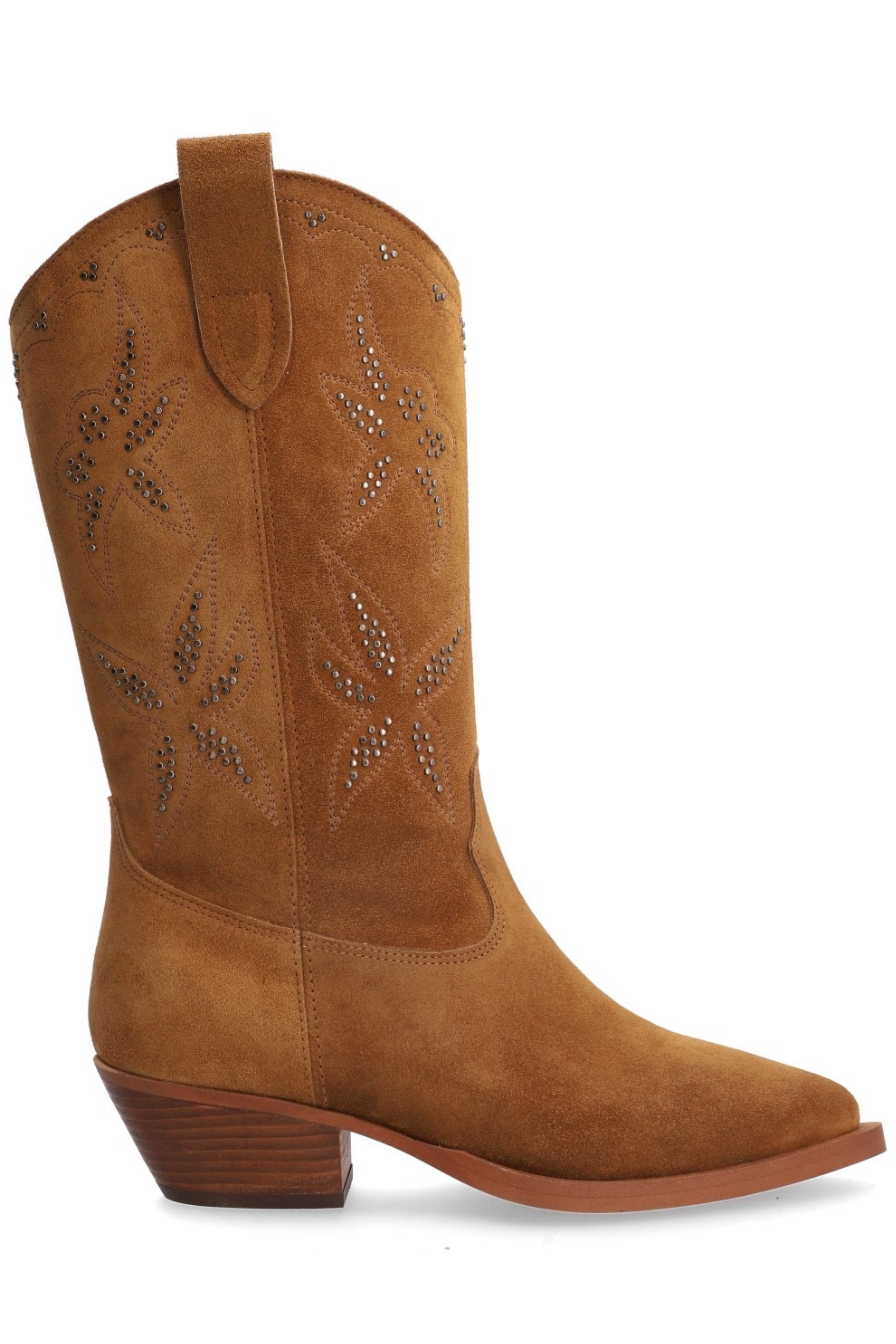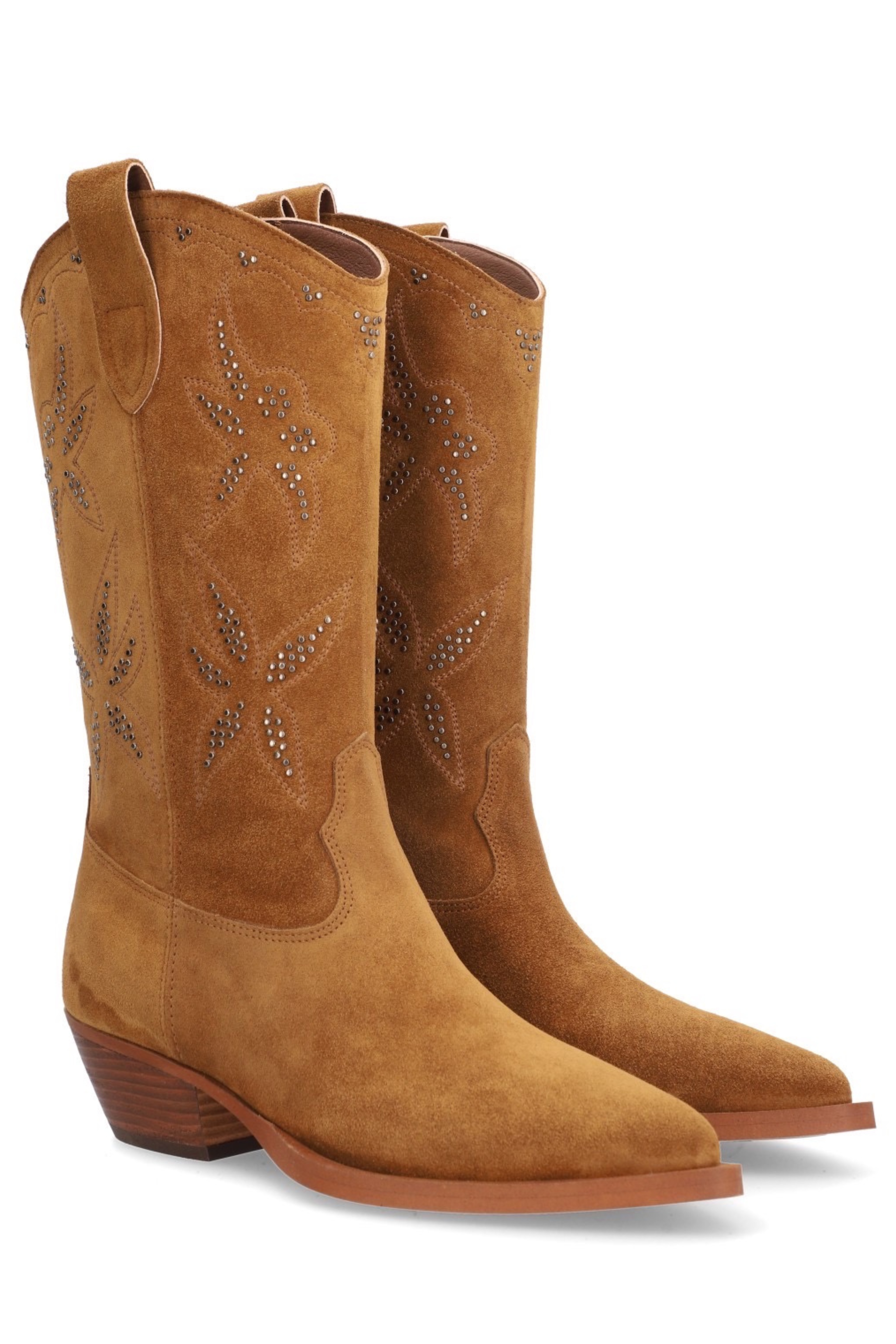 Elevate your footwear game with the 5543 Cowboy Boot in tan. A timeless silhouette reimagined with edgy studded detailing.