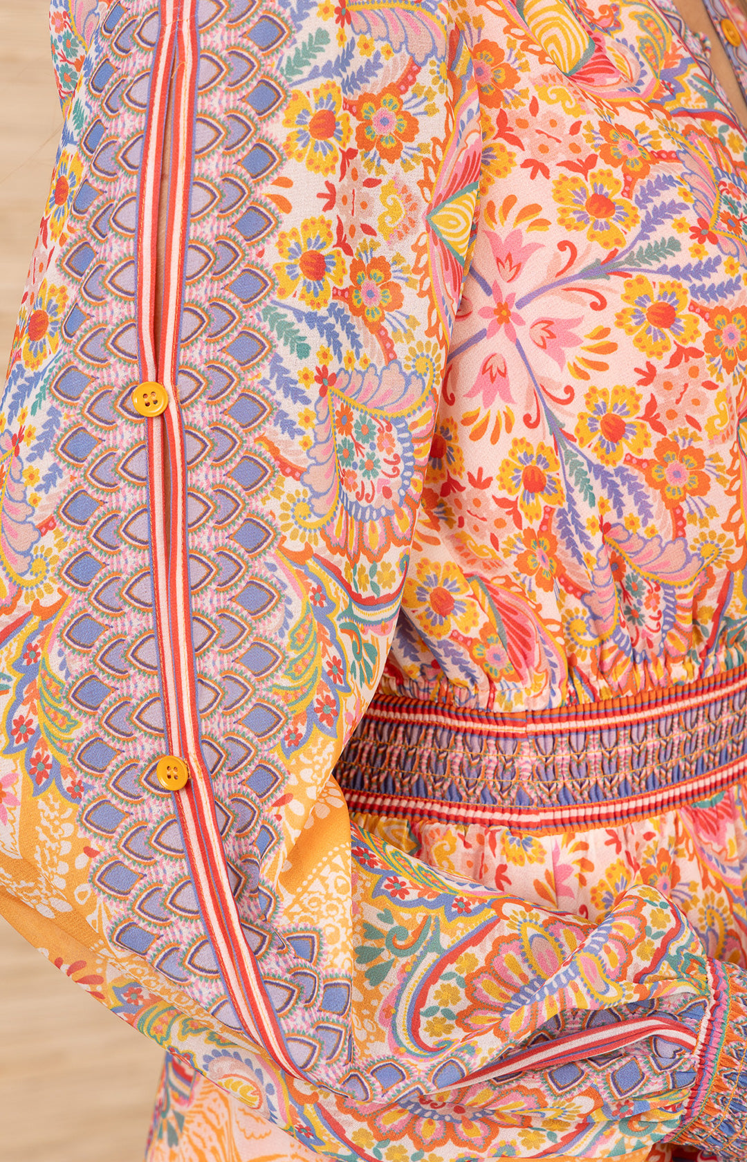 • Long sleeve with smocked cuff