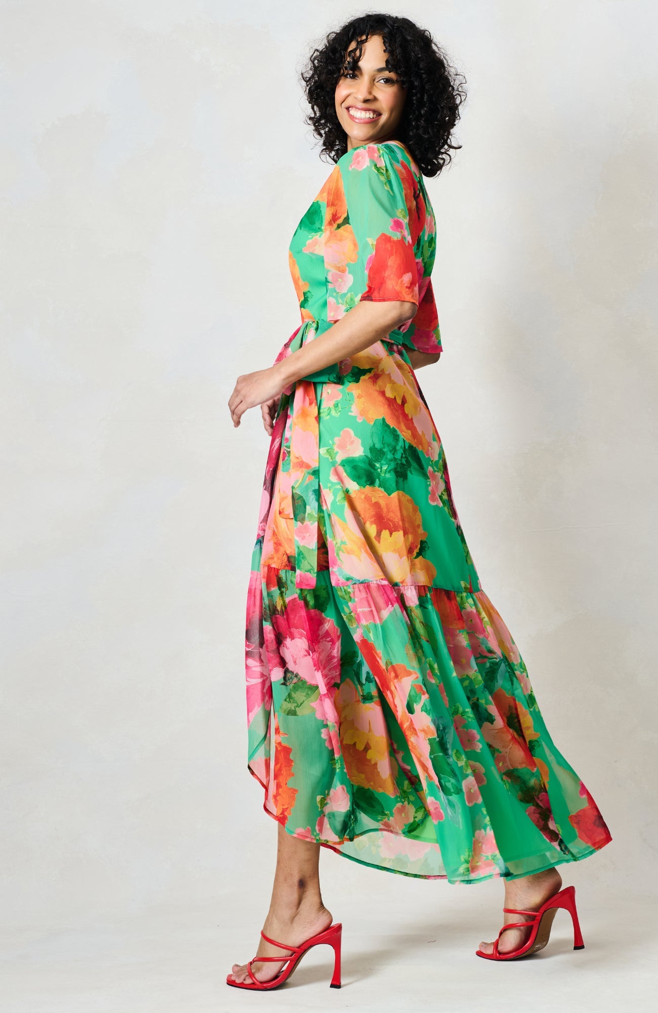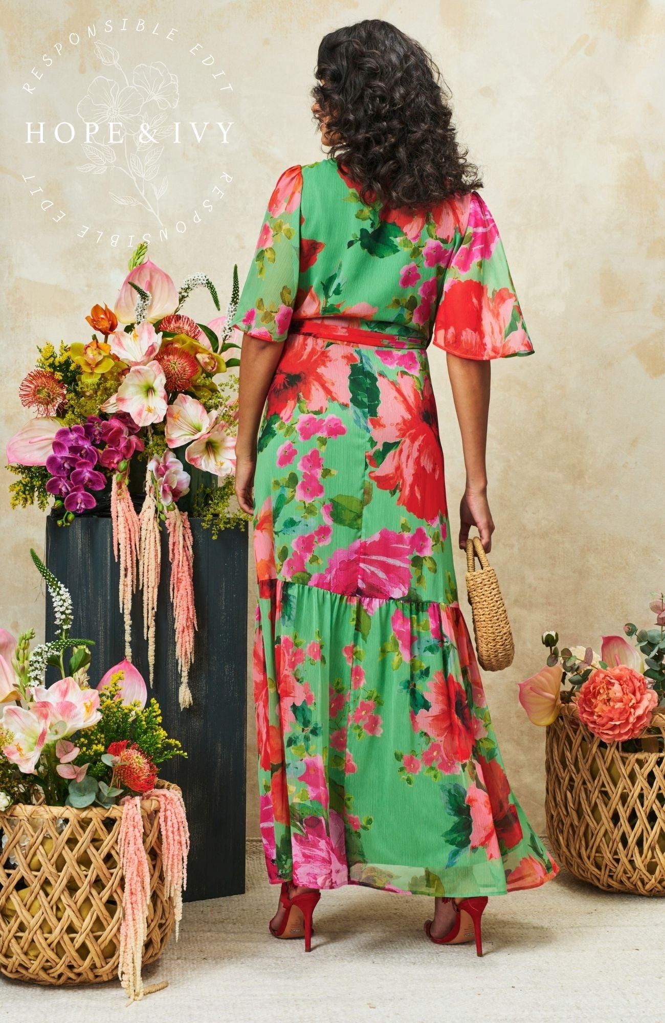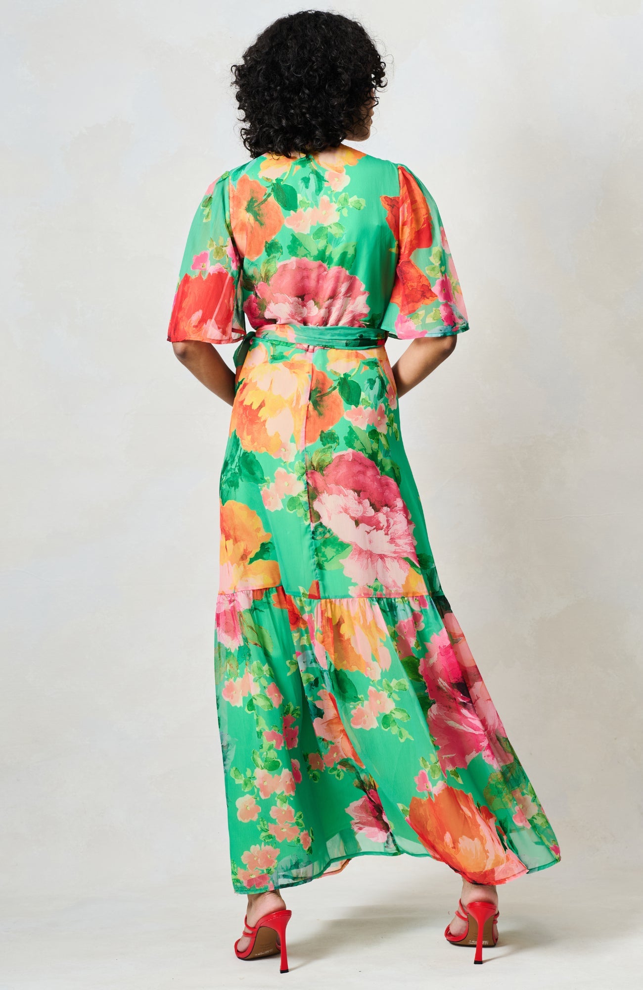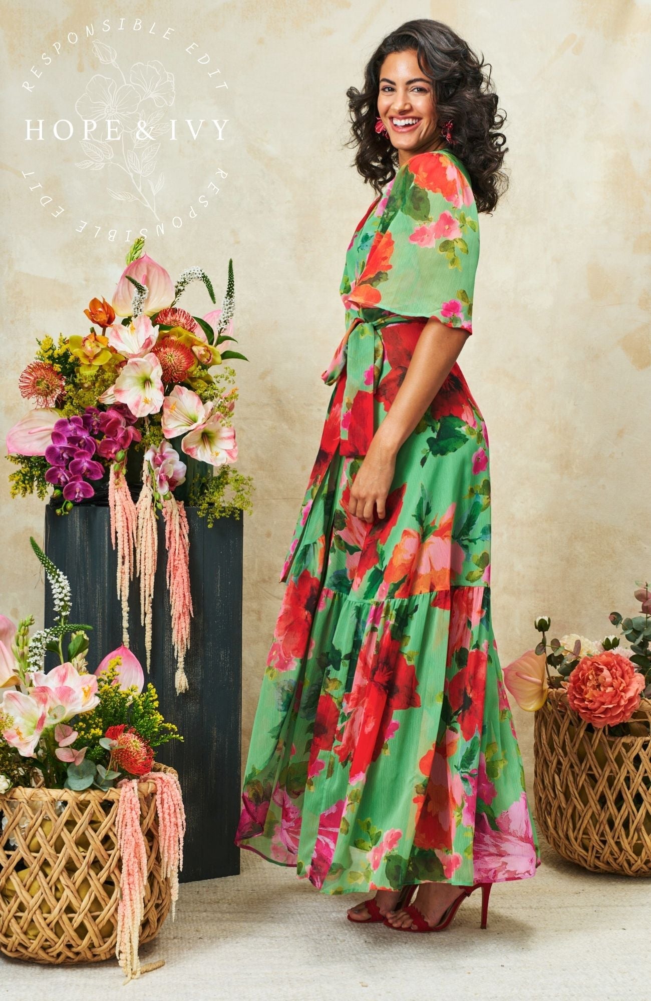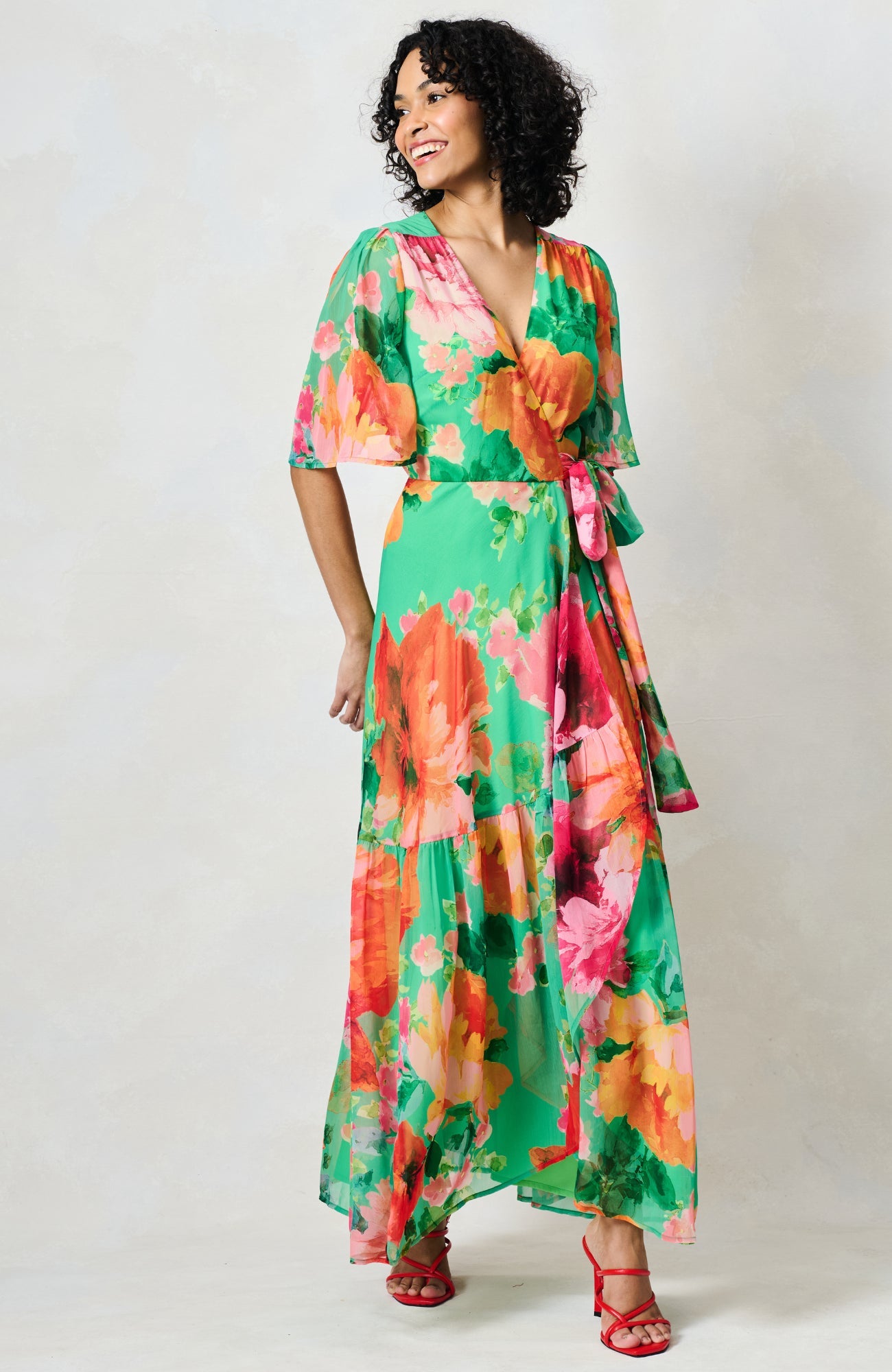 The Samantha is a wearable spring hero, a flutter sleeve wrap that’s flattering, feminine and easy to reach for when plans start filling the diary. The waist tie creates a beautiful silhouette, while the maxi skirt offers graceful movement. The green and red palette feels vibrant yet timeless, making this a reliable go to for both daytime and occasion dressing.