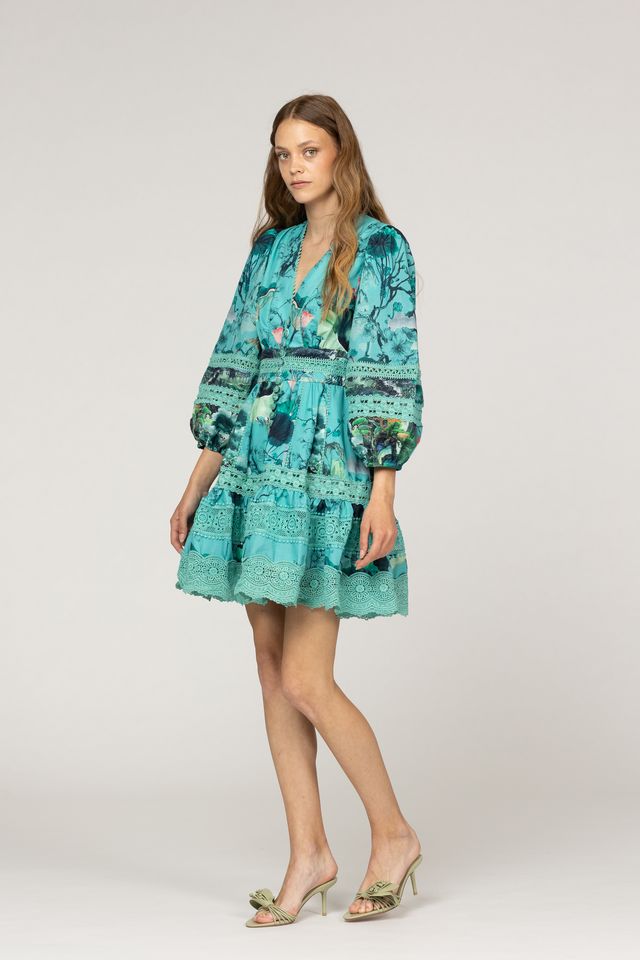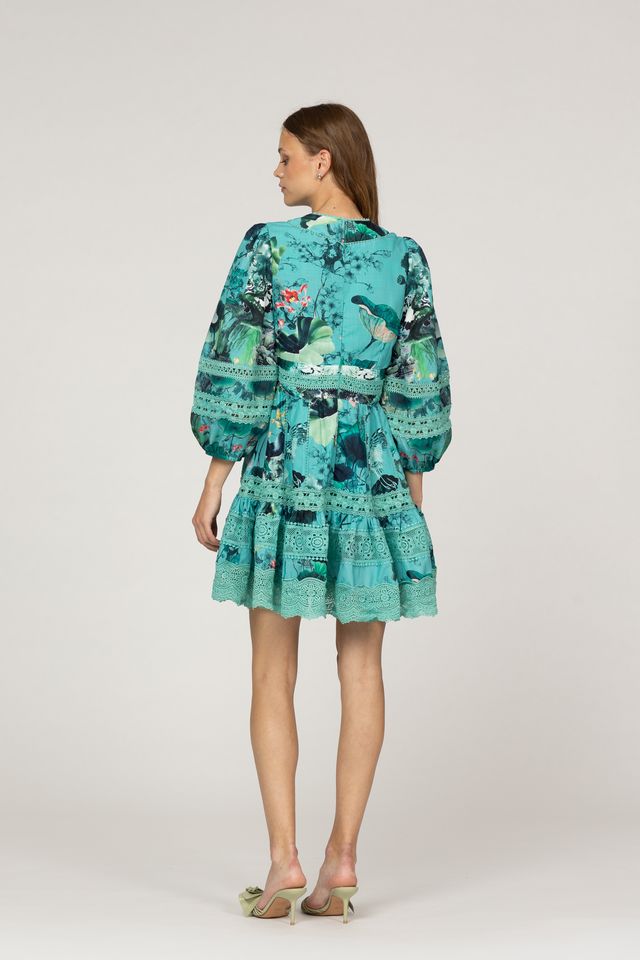 Discover summery sophistication with this Bavarian dress in the captivating Rapa flora/green print.