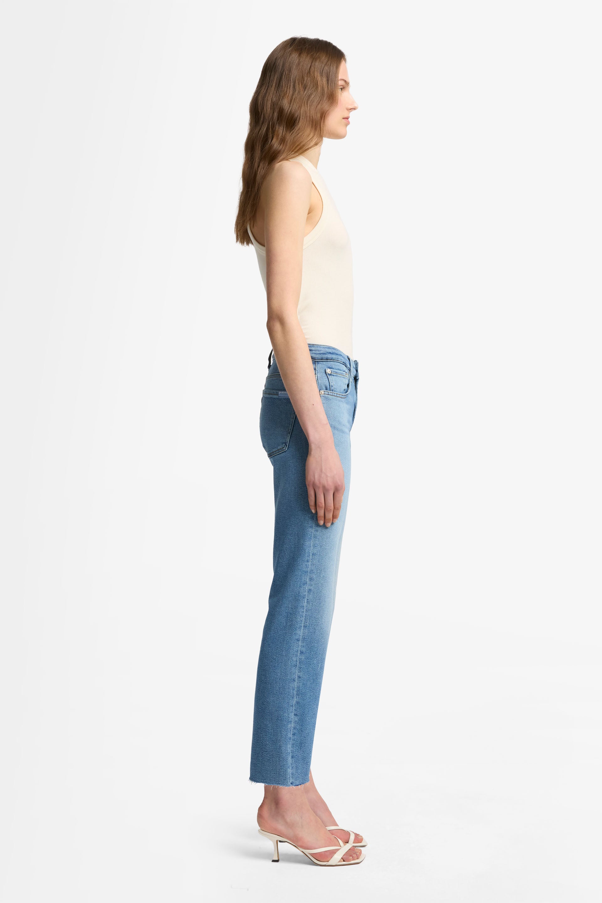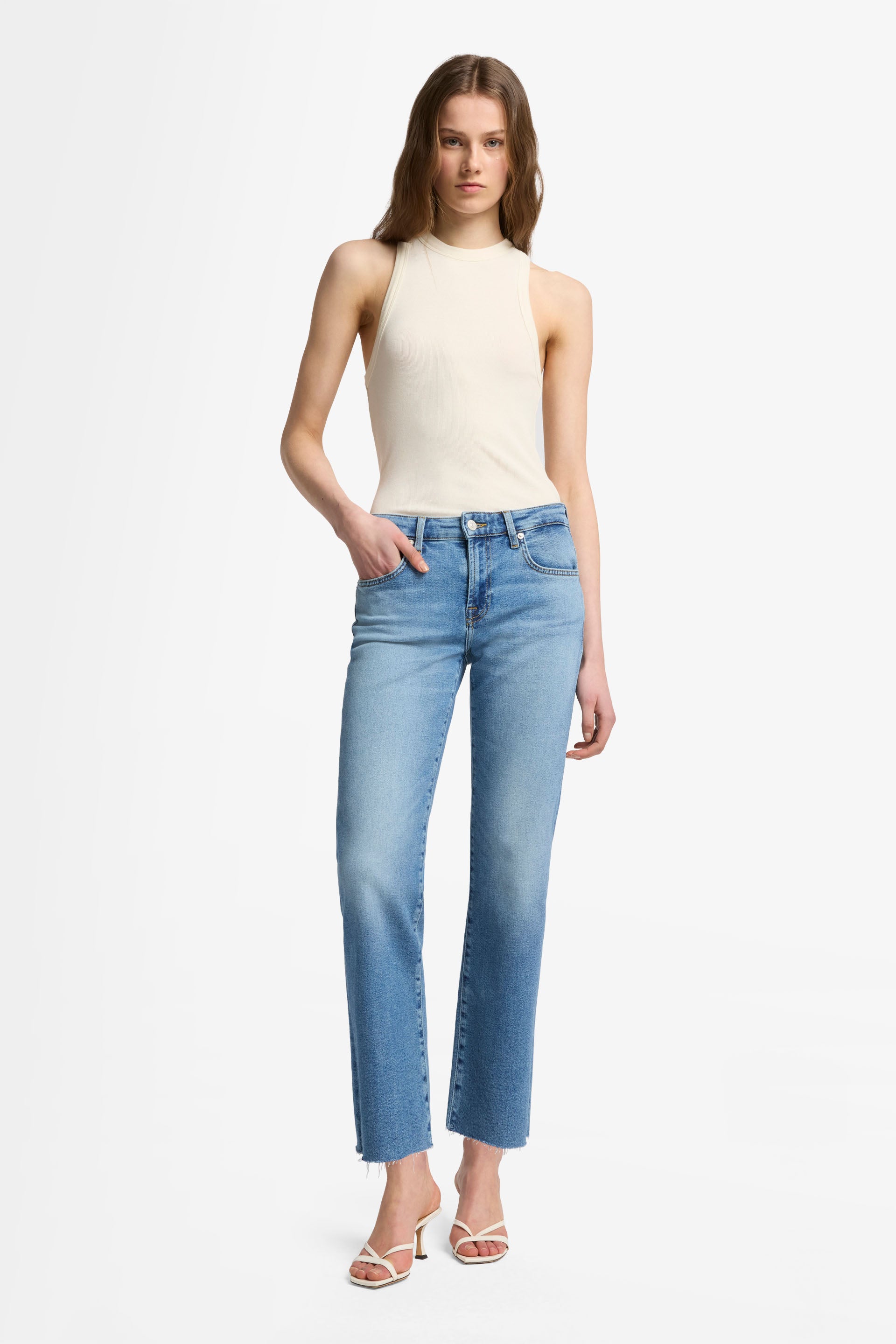 These Calie Straight Ankle Fancy Jeans in a classic blue wash offer a sleek, modern fit that flatters every silhouette. Designed to hit just above the ankle, they pair effortlessly with heels or sneakers for versatile styling. Crafted with quality materials, they provide comfortable wear without compromising style, making them a must-have for your everyday wardrobe.