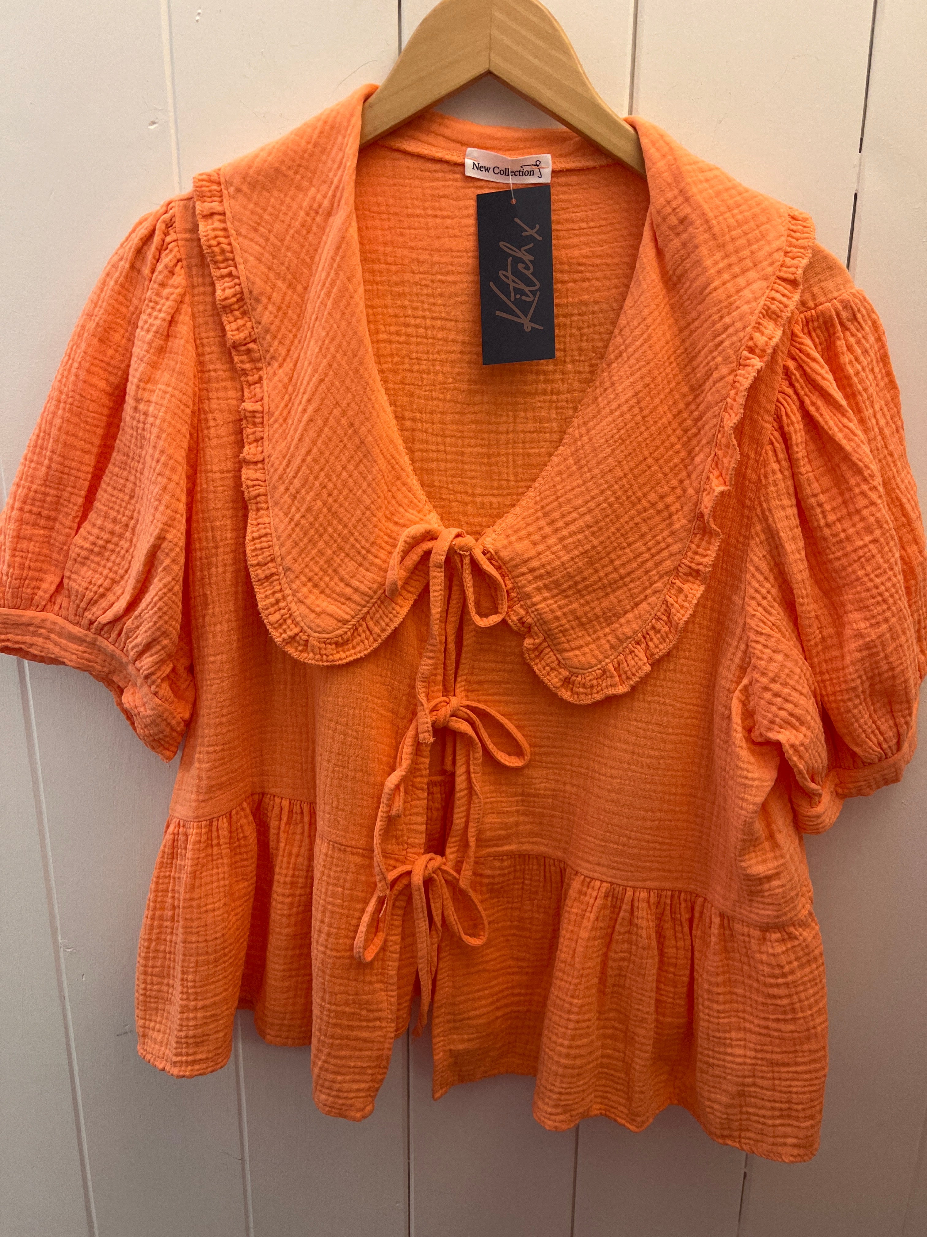 Elevate your everyday wardrobe with the BC Bow Top in orange. The delicate bow detail adds a touch of feminine elegance, making it perfect for both casual outings and dressed-up occasions.