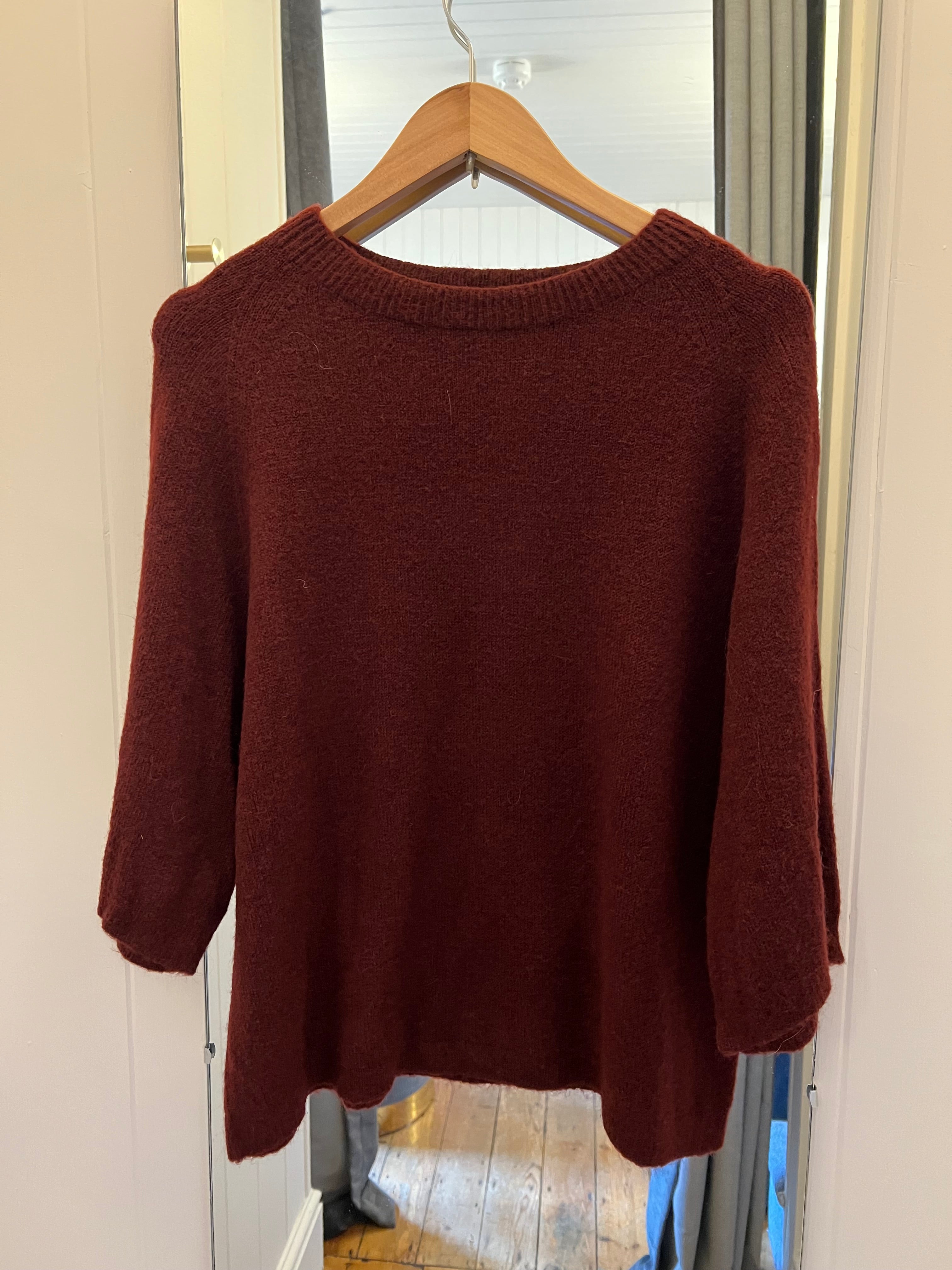 Knitted from sumptuous alpaca, this sweater has a relaxed shape with ribbed trims and three-quarter length sleeves. The cropped hem and sleeves on the sweater offers up fresh ways to style it – wear it solo or layer it over a longer-sleeved shirt. It’s knitted from alpaca wool blend that feels beautifully soft thanks to its special quality. Wear it half-tucked into your favourite jeans.