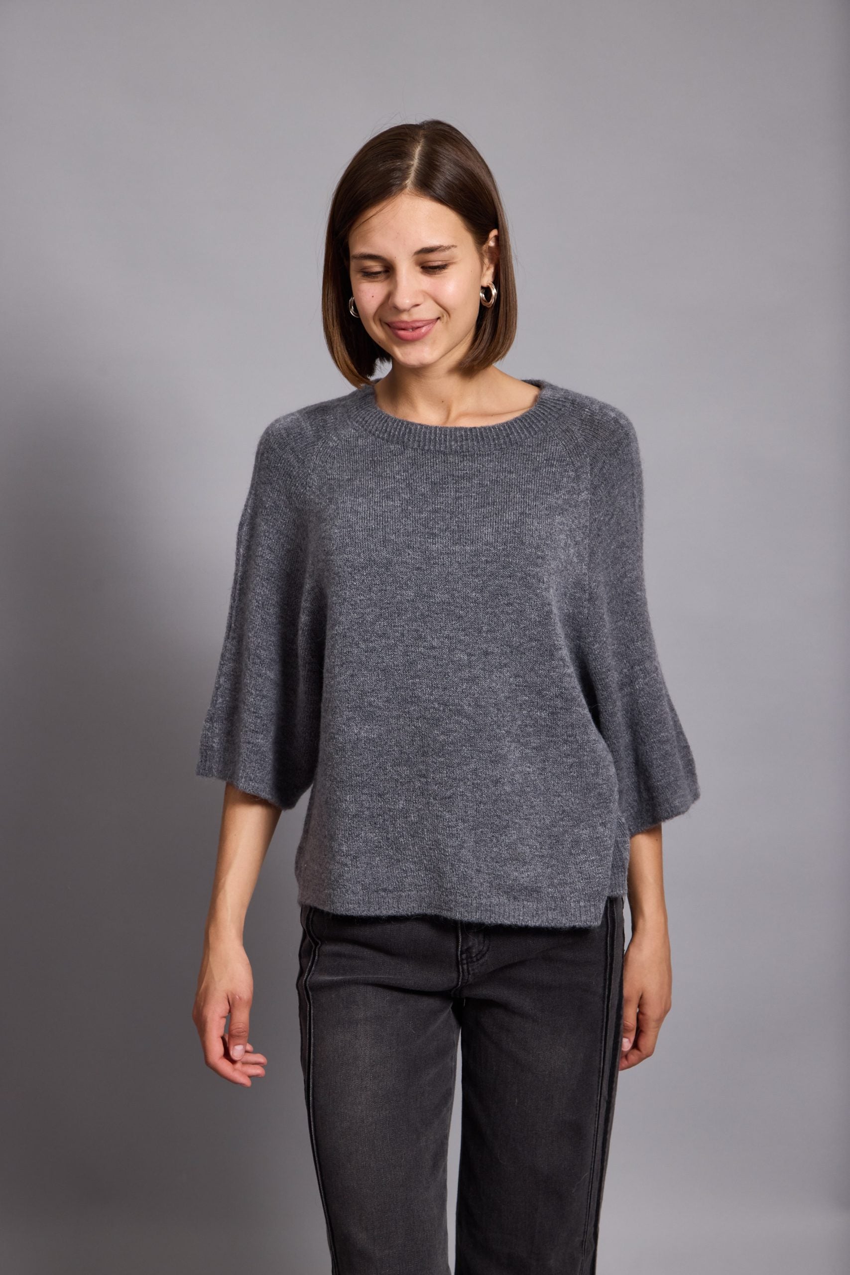 Knitted from sumptuous alpaca, this sweater has a relaxed shape with ribbed trims and three-quarter length sleeves. The cropped hem and sleeves on the sweater offers up fresh ways to style it – wear it solo or layer it over a longer-sleeved shirt. It’s knitted from alpaca wool blend that feels beautifully soft thanks to its special quality. Wear it half-tucked into your favourite jeans.