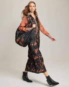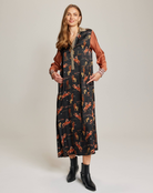 Midi length long sleeve dress with plaquet closure cuffs and collar. Contrasting side panels give extra flowiness. Wear with your favorite boots for a chic, stylish look.