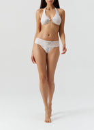 Invest in an Odabash icon with the Brussels Bikini Bottoms, reimagined for Cruise 2026 in our tonal Lizard print. Designed to offer elevated support. The hipster bottoms feature a chic folded panel for enhanced coverage. Pair with the matching halterneck top with adjustable tie straps allow for a custom fit and a signature gold ring at the centre of the bust adds a polished, luxe detail.