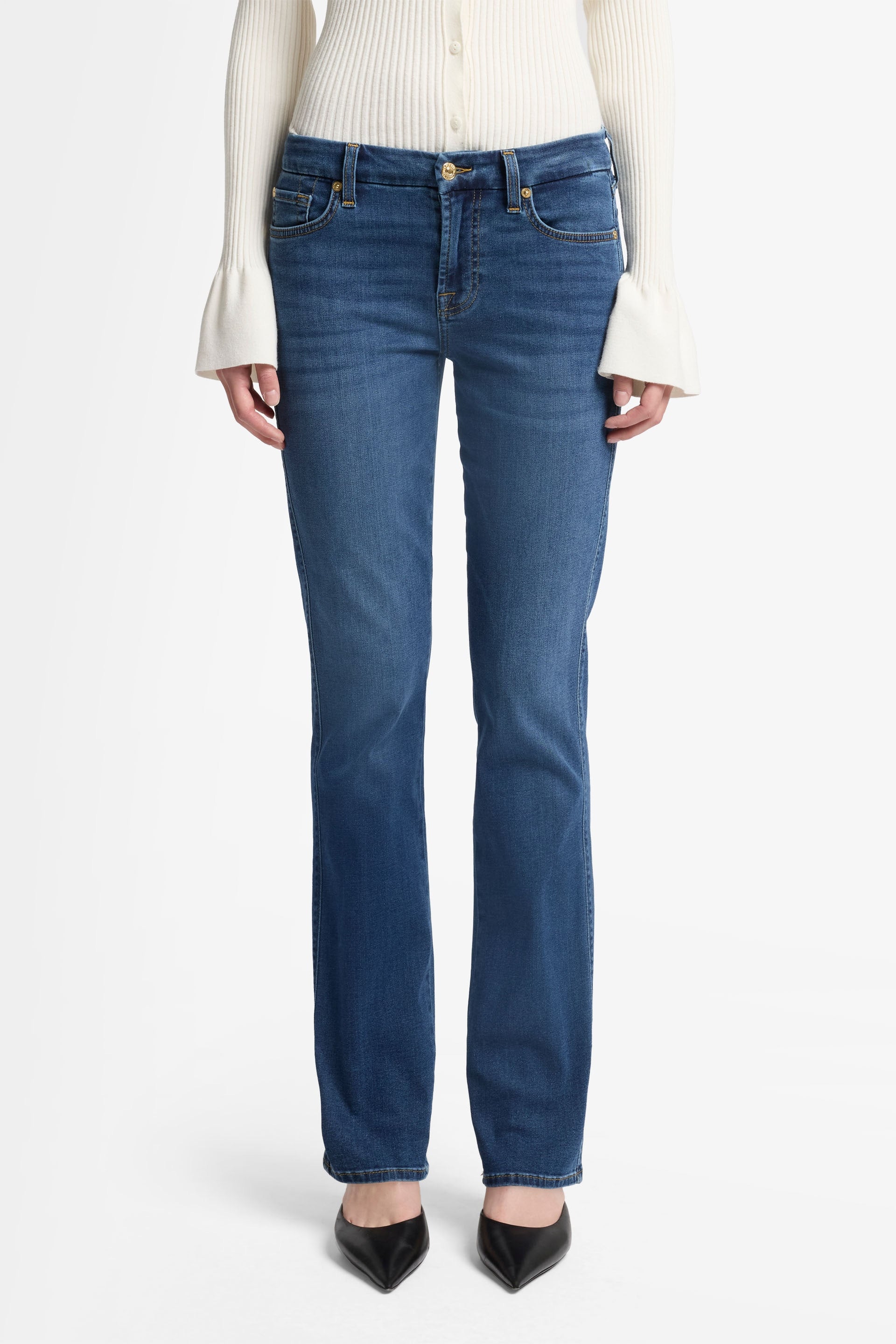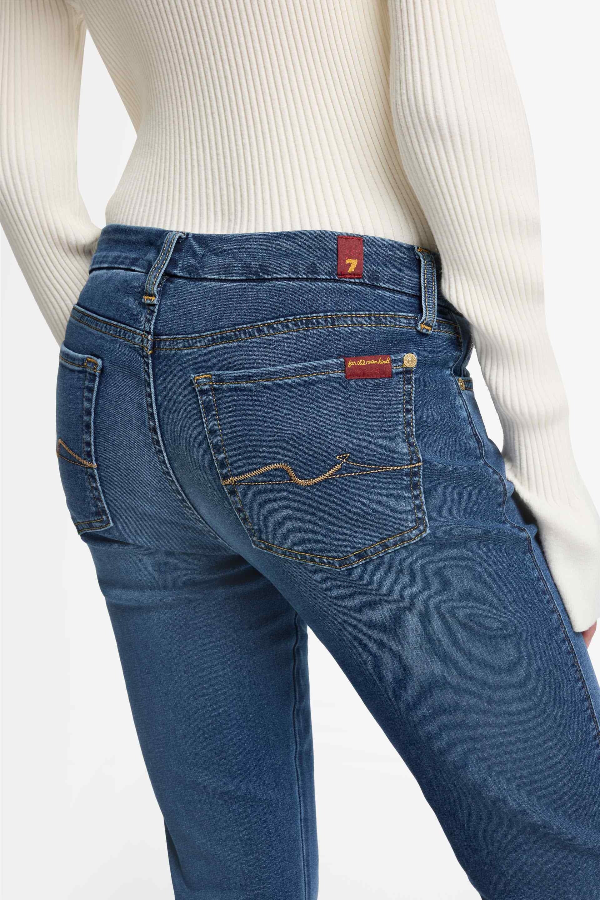 If you invest in one pair of jeans for the season ahead, let it be the Kimmie Straight in mid-blue. This mid-rise, straight-leg style is crafted from B(air) Eco denim – a sustainable, ultra-lightweight fabric that offers supreme comfort every day. 7 For All Mankind jeans are made from premium-quality fabrics.