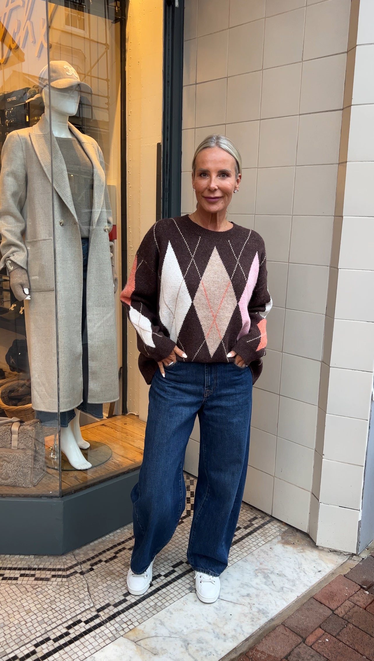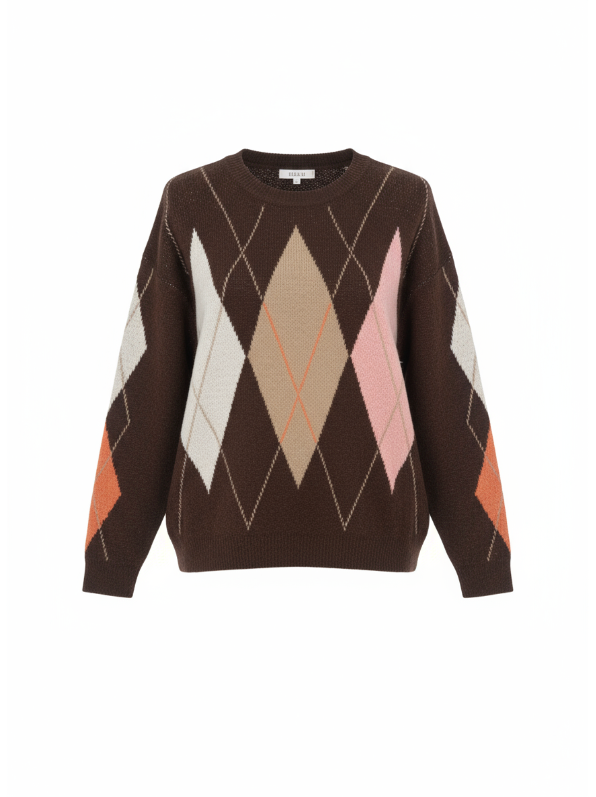 Elevate your everyday wardrobe with this sophisticated chocolate-toned diamond knit.