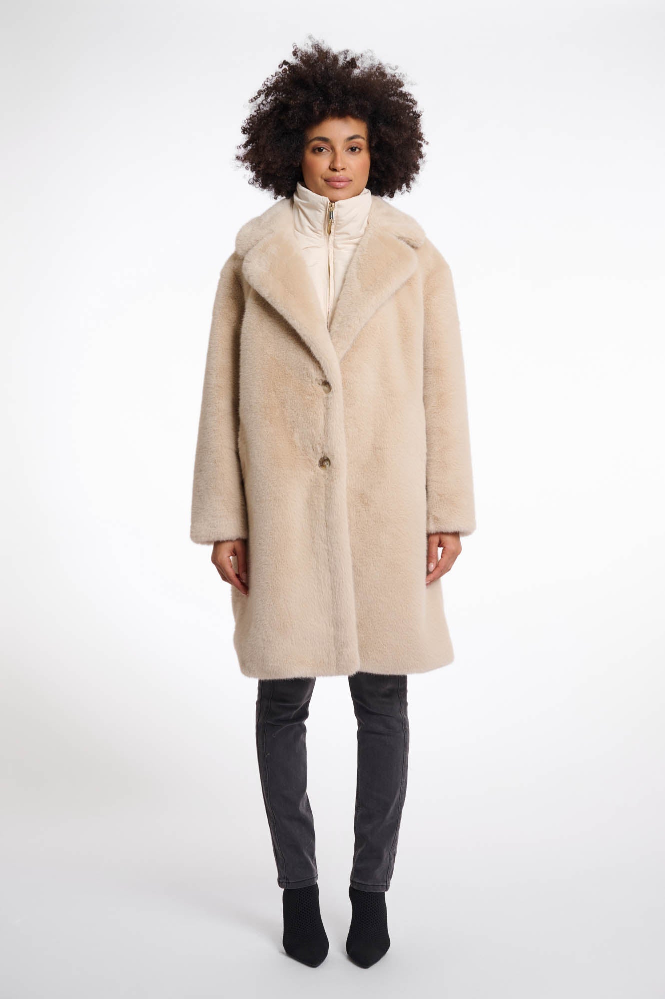Geesje Faux Fur Coat - Light Oat