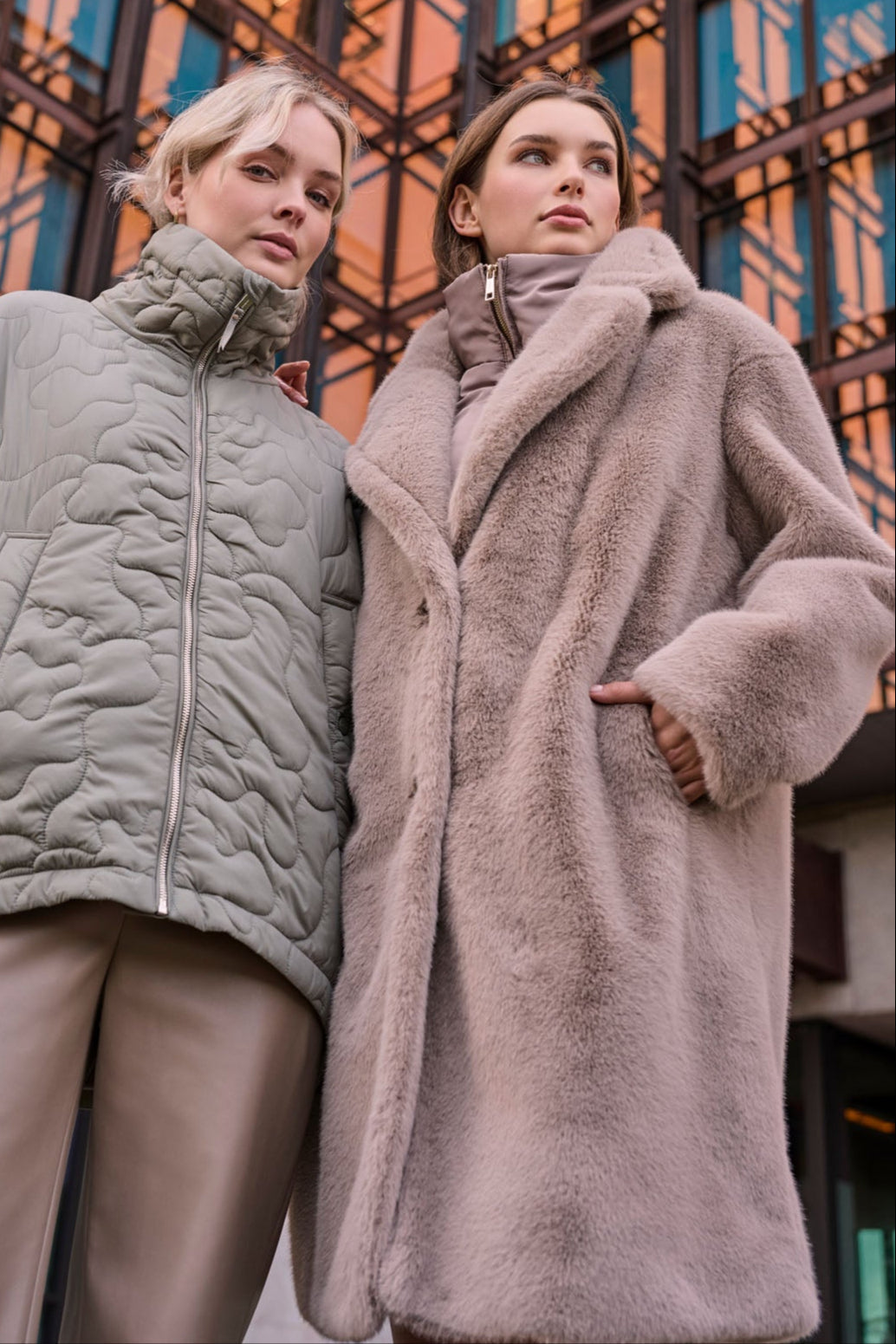 Wrap yourself in the luxurious embrace of this stunning faux-fur coat. This incredibly soft coat features a stylish lapel collar, a button closure, and practical side slit pockets. For added versatility and warmth, this coat also boasts a removable padded collar which can be easily attached or detached with a convenient zipper, allowing you to customize your style and comfort for any weather.