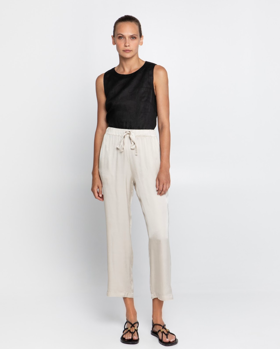 510541 Cropped Drawstring Trousers - Beige