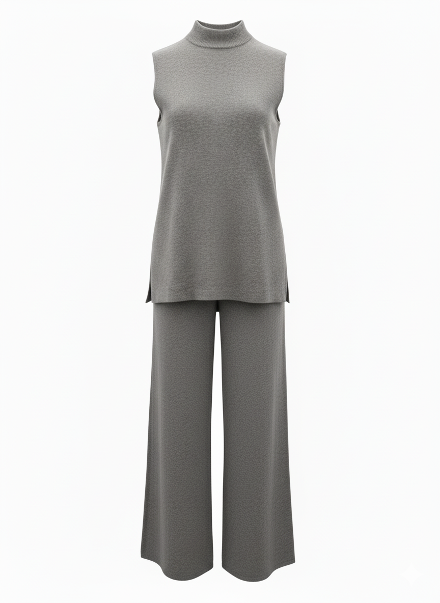 This versatile two-piece set seamlessly transitions from casual days to evening occasions, offering effortless style and comfort.