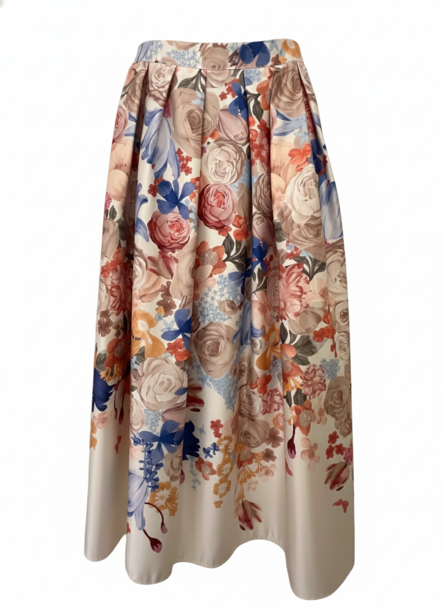 Featuring a beautiful floral print, this skirt offers a fresh, feminine aesthetic perfect for creating versatile looks. Whether you're dressing up for a special event or keeping things casual, this skirt will elevate any look.