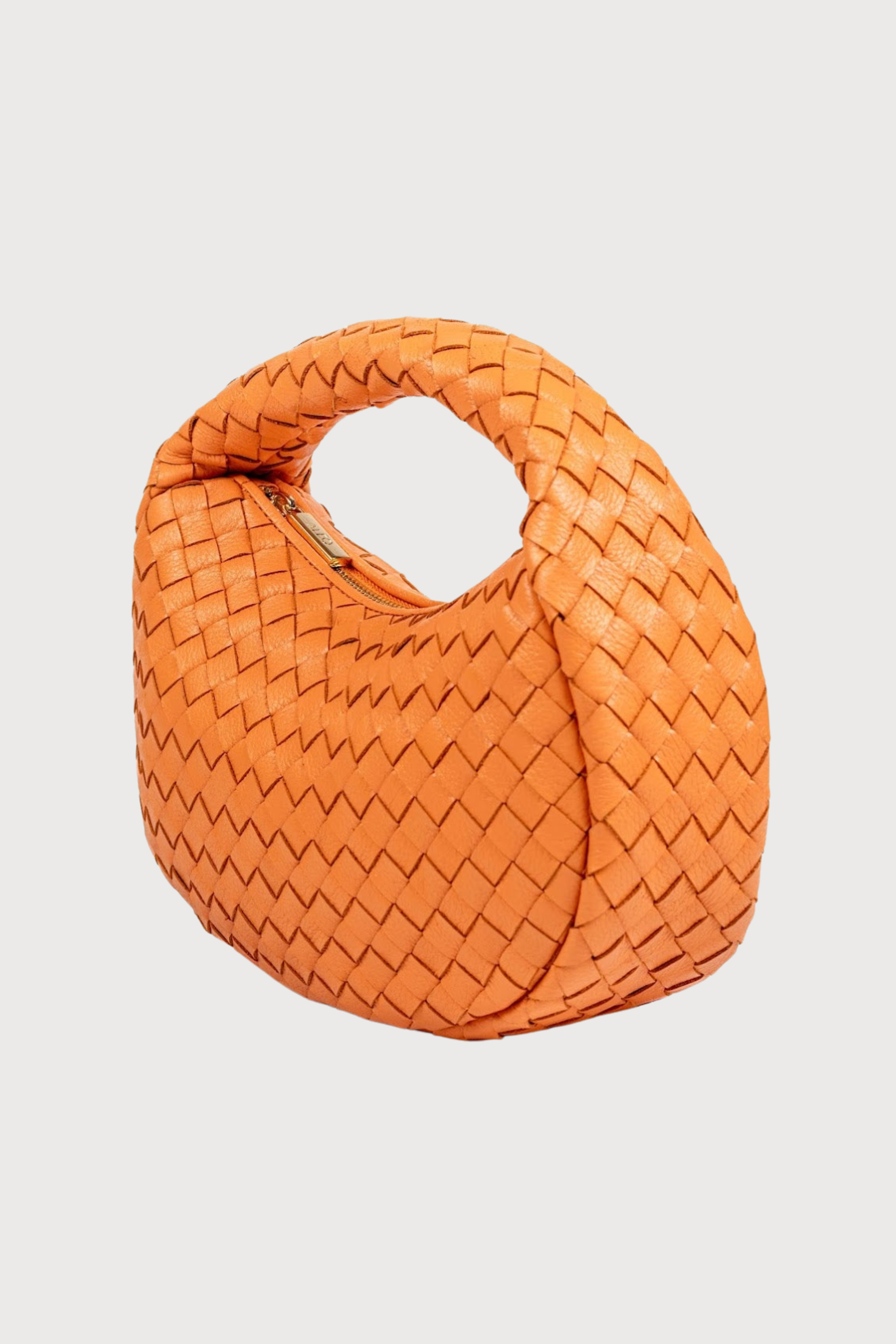 The Laluna mini bag features a woven handle, soft handwoven crossway weave and a sand coloured cotton lining on the interior.