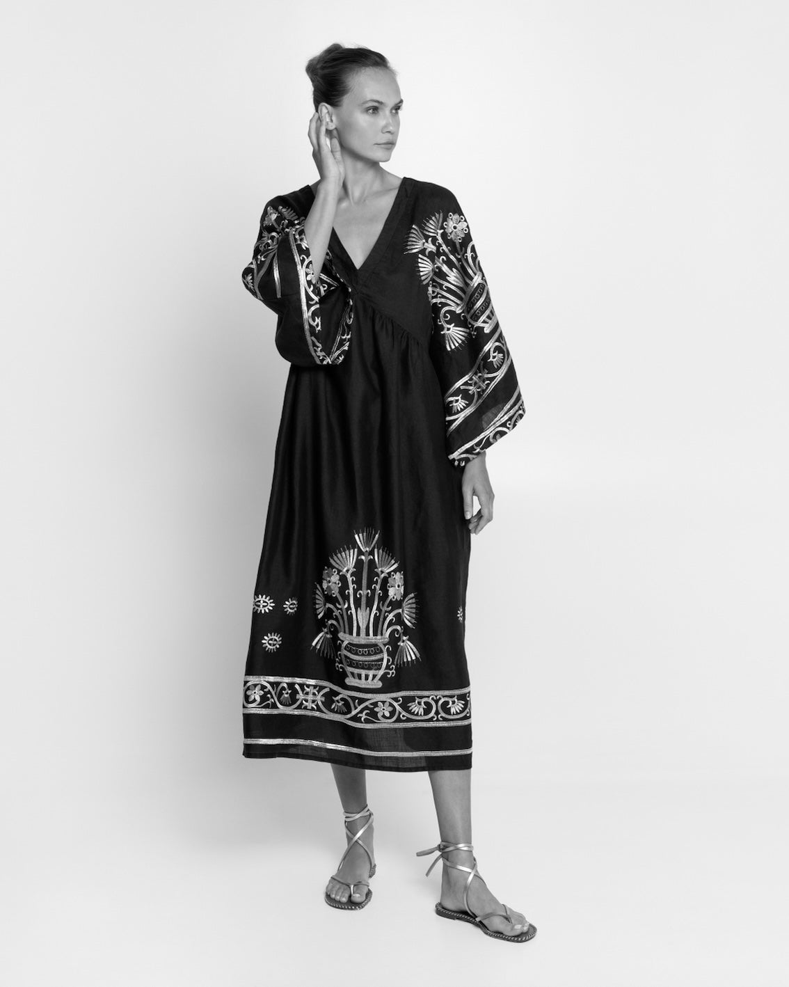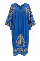 430582 Long Crete Bell Sleeve Dress - Blue Raf/Gold