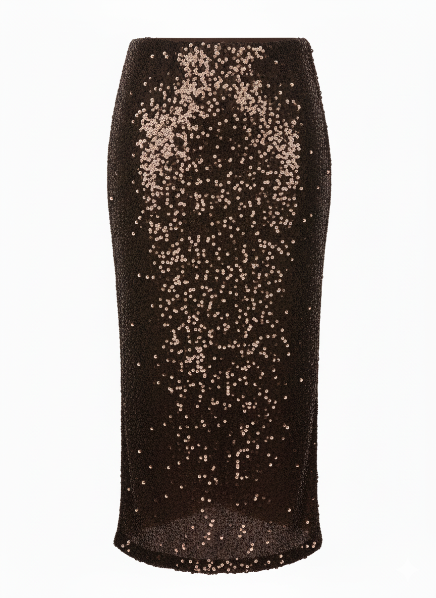 Elevate your evening look with this stunning sequin skirt in rich chocolate brown. The shimmering sequin detailing catches the light beautifully, creating an eye-catching shimmer that transitions seamlessly from night out to special occasions.