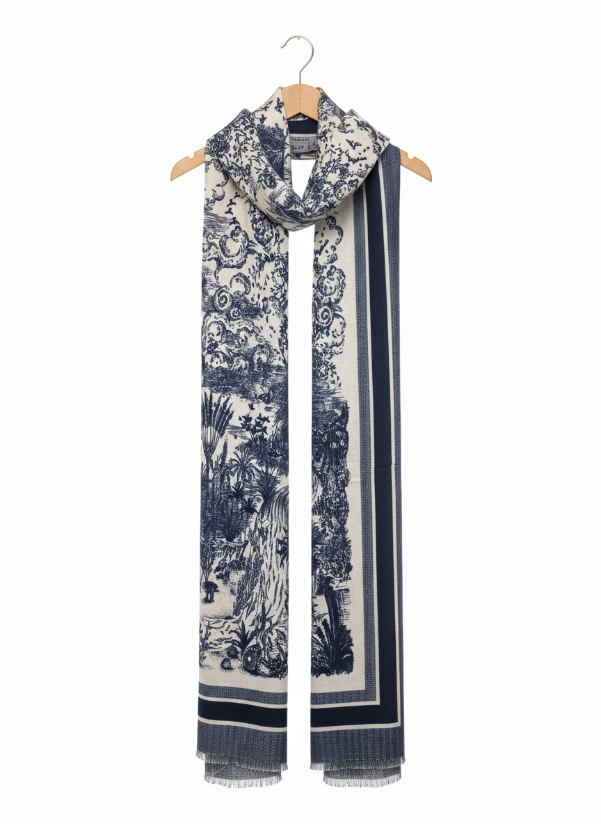 Elevate your everyday style with this versatile navy scarf, featuring an eye-catching printed design that adds character to any outfit. Perfect for layering during cooler months or draping effortlessly over your shoulders, this piece transitions seamlessly from casual to sophisticated.