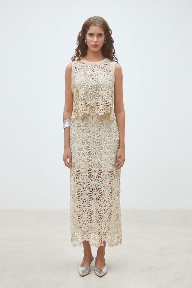 Make a statement with the Lois Blouse in Beige, a captivating piece featuring shimmering sequins that add instant glamour to your look.
