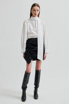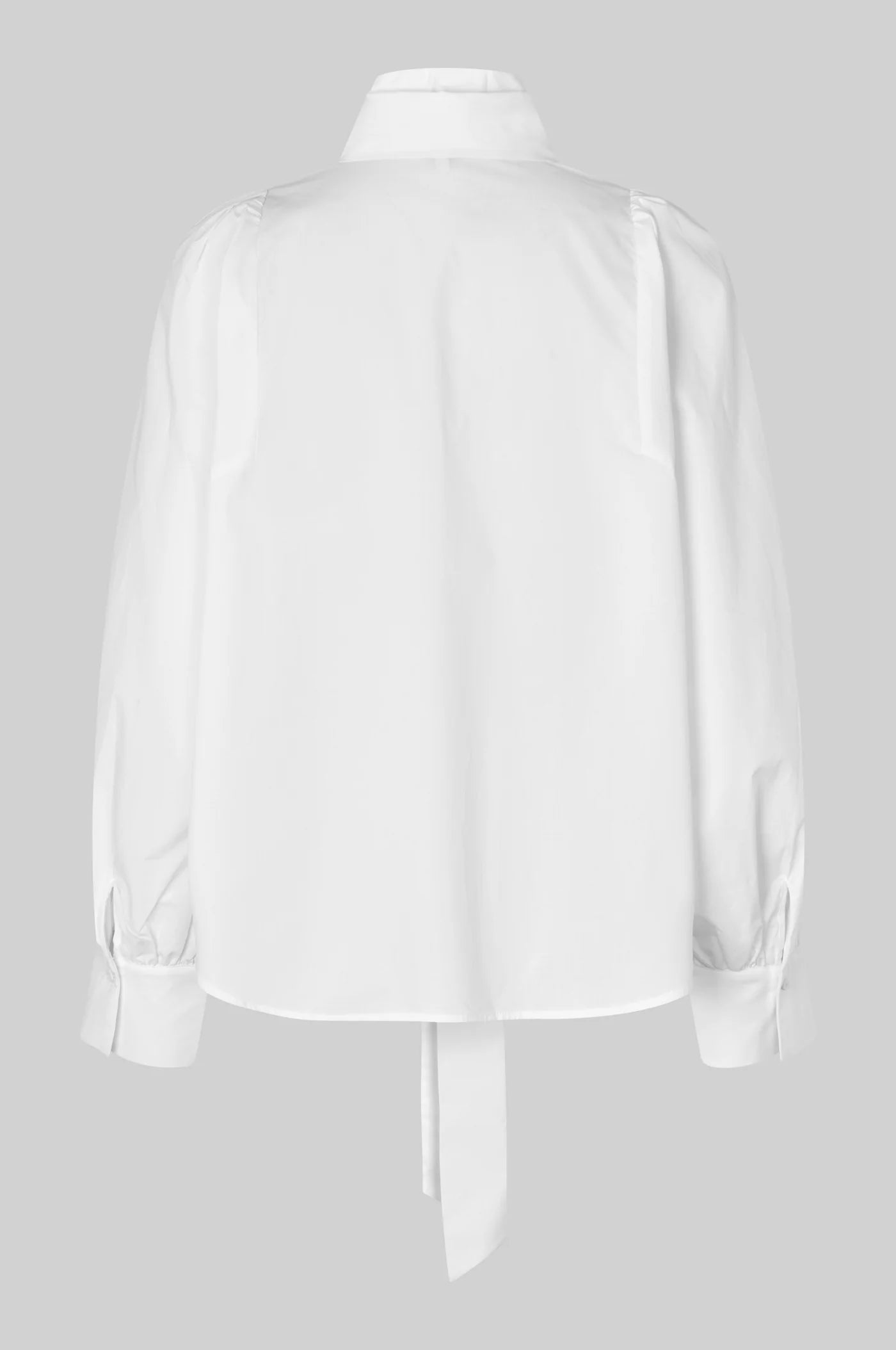 Second Female tie blouse. Made in lightweight, smooth organic cotton. Featuring a keyhole opening at the front with button fastening and detachable tie detail. Long sleeves with square raglan seam and buttoned cuffs. Loose and airy fit.