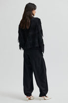 Second Female fringed shirt. Made in smooth fabric with tonal fringing at body and sleeves. Featuring a regular collar and button-through fastening. Long sleeves with wide buttoned cuffs. Cropped, straight fit.