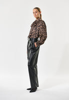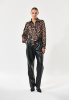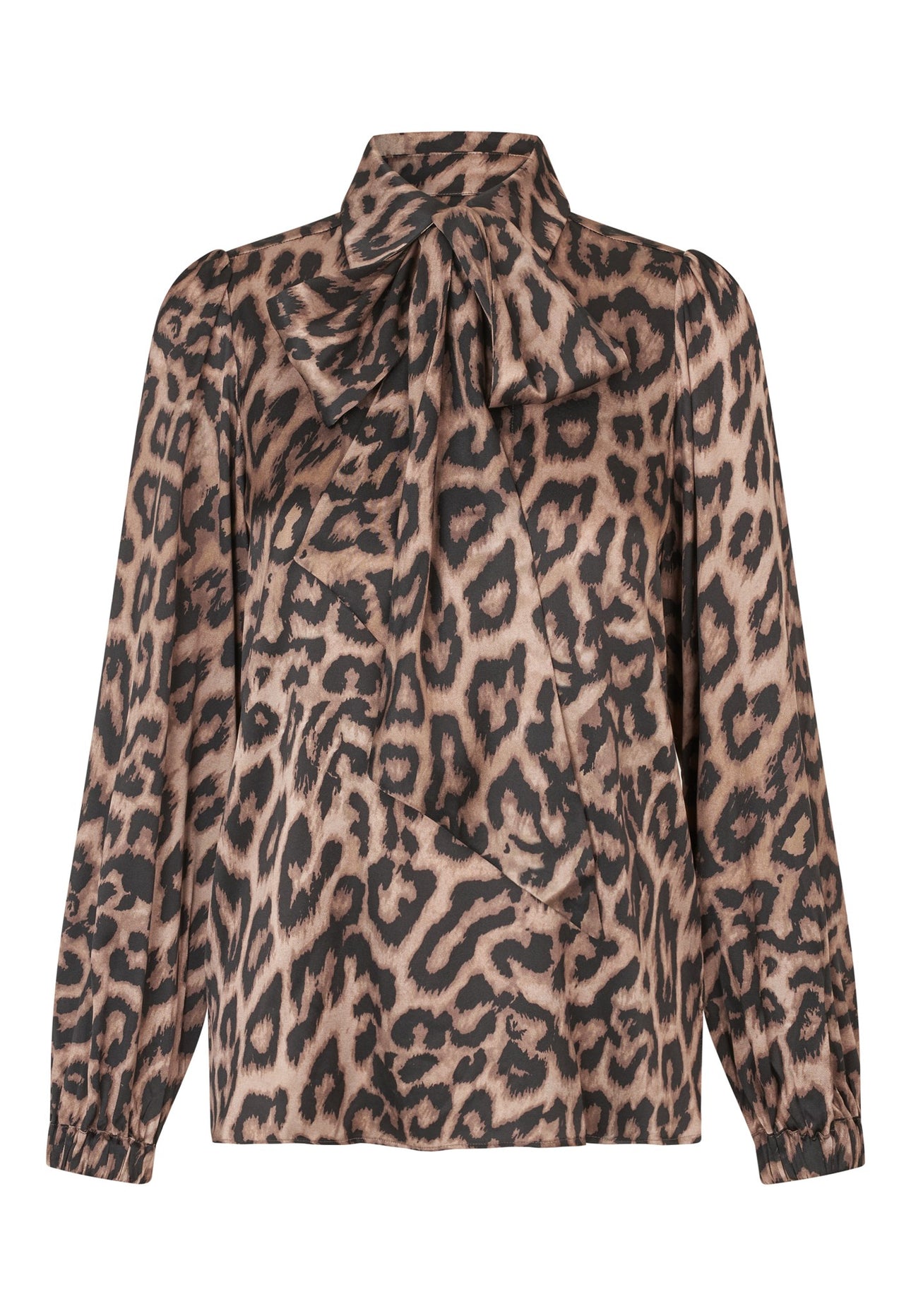 This sophisticated blouse in a classic leopard printed silk makes a bold statement with the detachable bow at the neck. It comes in a regular fit with elasticated cuffs that create a delicate frill and there are covered buttons at the neck above a key hole slit at the front.