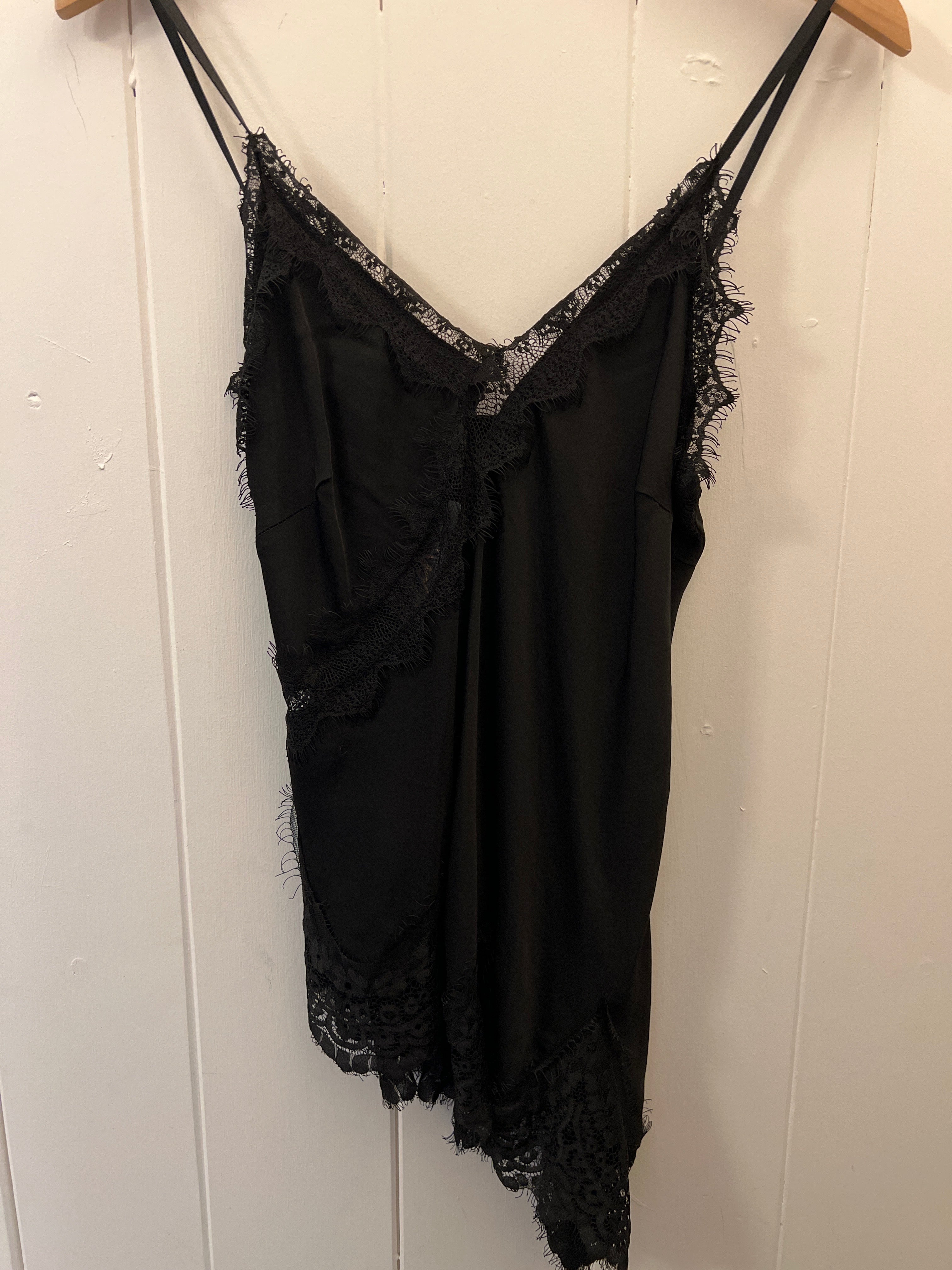 Voy 23408 Asymmetric Lace Trim Vest - Black