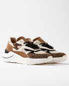 Running Sneakers in beige nylon and natural leather color suede with animalier print.