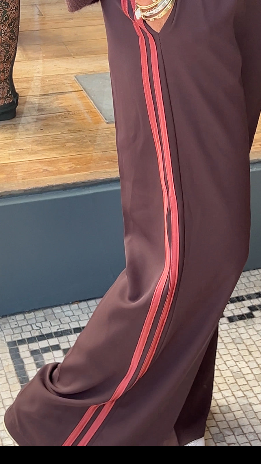 Voy 54947 Double Stripe Trousers - Choc/Rust