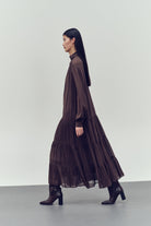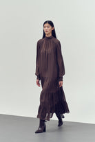 The model is: Height 1,80 cm (5,90 ft), Bust 79 cm ,Waist 63 cm, Hips 90 cm, and wears a size S